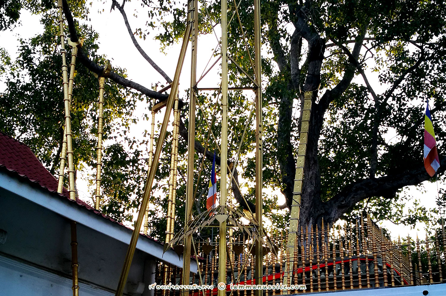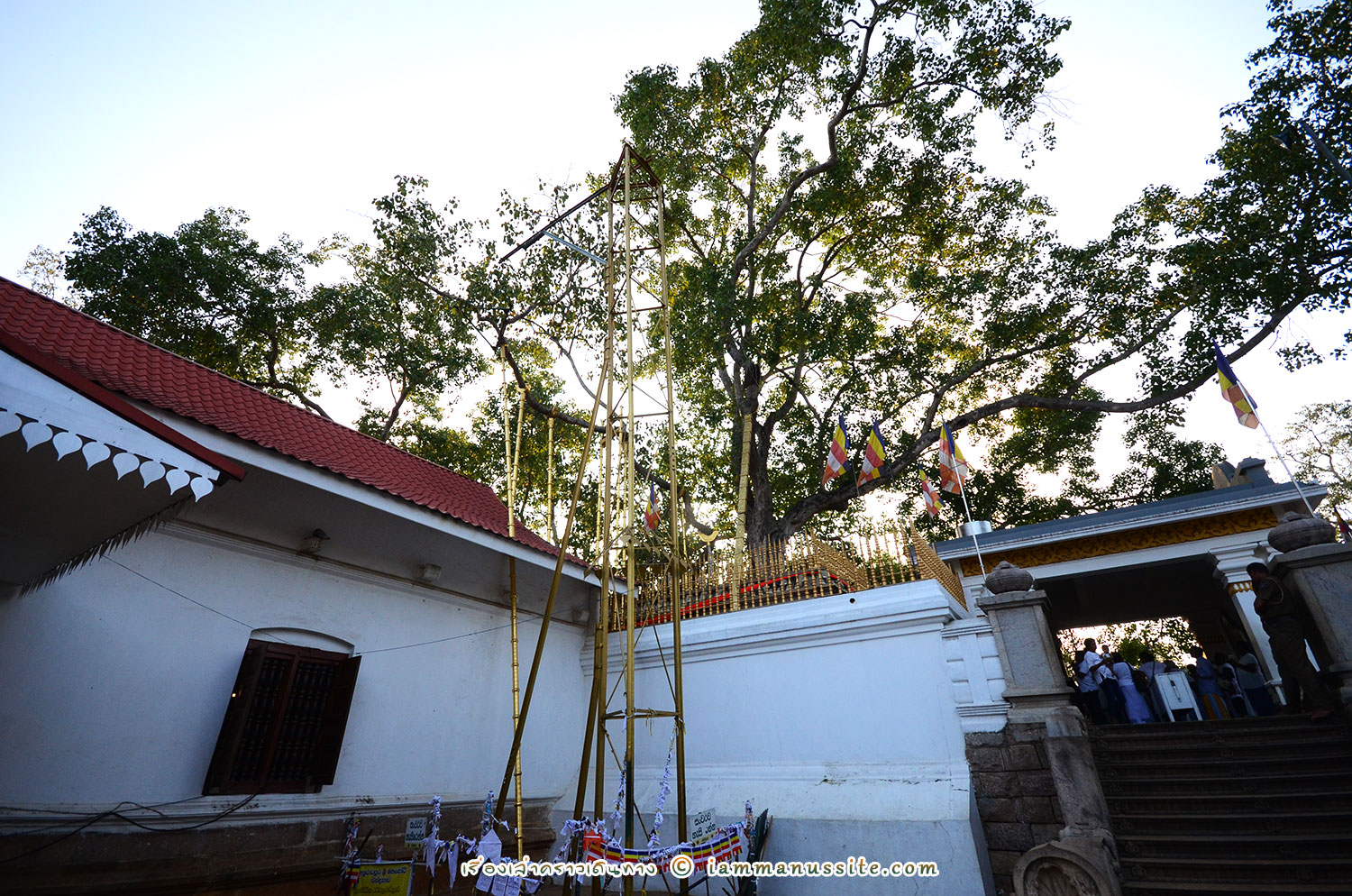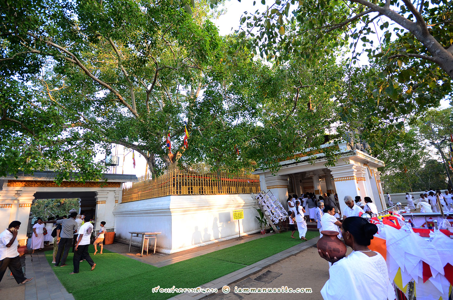 ออกนอกเขตอุทยานประวัติศาสตร์ พวกเรามาแวะสถานที่สำคัญมากๆอีกแห่งในอนุราธปุระ พระศรีมหาโพธิ์ (Sri Maha Bodhi) ถือว่าเป็นต้นโพธิ์ที่เก่าแก่ที่สุดในโลก ตามประวัติบอกว่า พระนางเถรีสังฆมิตตา พระราชธิดาของพระเจ้าอโศกมหาราช ทรงผนวชเป็นภิกษุณีอยู่ที่วัดสุรุมุณิยะ (ที่เราไปแวะที่แรกนั่นแหละ) เป็นผู้นำต้นพระศรีมหาโพธิ์ต้นนี้มาจากพุทธคยา ในประเทศอินเดีย เมื่อ 2,500 กว่าปีที่แล้ว จะเข้าที่นี่ต้องจอดรถไว้ด้านนอก แล้วเดินเข้าไปตามทาง เข้าไปด้านในจะแน่นขนัดไปด้วยพุทธศาสนิกชนที่เข้ามากราบไหว้ศรีมหาโพธิ์เพื่อความเป็นสิริมงคล และผู้คนอีกมากมายที่มานั่งสวดมนต์ มานั่งสมาธิ พวกเราได้แต่เดินรอบๆ และรู้สึกได้ถึงแรงศรัทธาของชาวพุทธ พี่คนขับชี้ให้พวกเราดูว่าต้นไหนที่ถือว่าเป็นต้นดั้งเดิมที่แท้จริง เราก็ไม่รู้หรอกว่าต้นจริงต้นไม่จริงคืออะไร แต่ไม่ว่าอย่างไร ต้นศรีมหาโพธิ์นี้ก็เป็นที่ยึดเหนี่ยวจิตใจของพุทธศาสนิกชนทั้งหลายไว้ได้