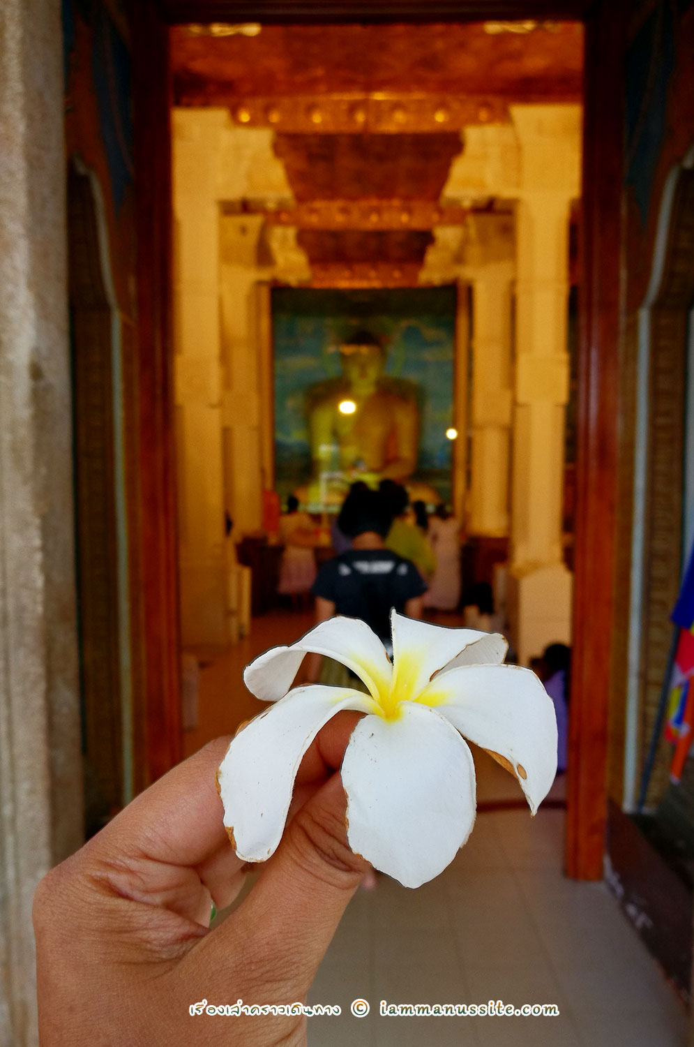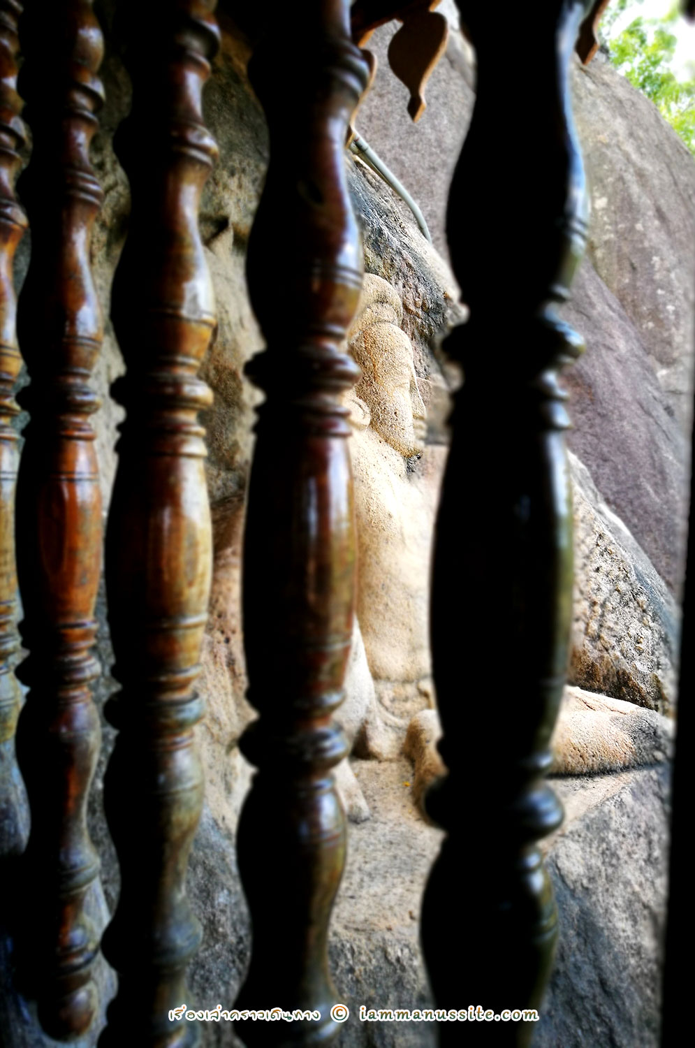 รถพาวิ่งผ่านหมู่แมกไม้ไปอีกไม่ไกลก็จอดให้พวกเราลง พี่คนขับชี้ให้เดินไปนมัสการพระพุทธรูป พวกเราเดินเข้าไปพร้อมป้าศรีลังกากลุ่มใหญ่ในชุดสีขาวสะอาด ที่ต่างก็เข้าไปก้มกราบสักการะองค์พระพุทธรูปหินทรายที่สลักไว้ได้สวยงามมากๆ The Samadhi Buddha องค์นี้ มีอายุกว่า 2500 ปี พี่คนขับบอกว่าให้เดินดูทั้งด้านซ้ายและด้านขวาจะเห็นหน้าท่านไม่เหมือนกัน คือมีทั้งด้านสุขและด้านเศร้า
