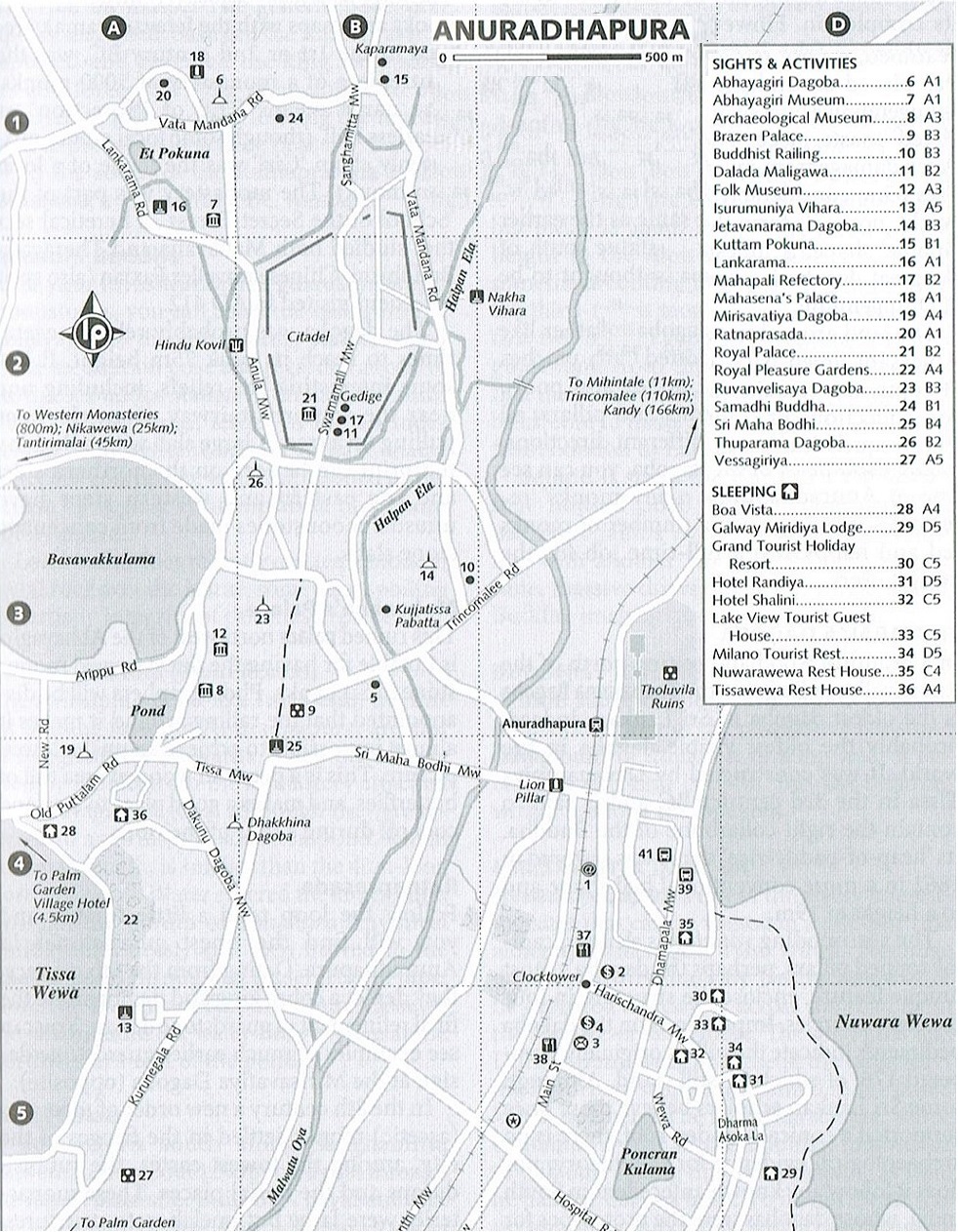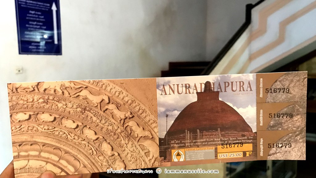 จากนั้น แวะเข้าไปที่ Abhayagiri Museum สามารถซื้อตั๋วเข้า Sacred City ได้ที่นี่ ราคาบัตร 13,800 รูปี หรือ 25$ การเข้าไปเที่ยวใน Sacred City of Anuradhapura อารมณ์คล้ายเข้าไปเที่ยวอุทยานประวัติศาสตร์บ้านเรานั่นแหละ ในส่วนเมืองโบราณนี้มี ทั้งเขตพระราชฐาน มีทั้งวัด ทั้งเจดีย์ กระจัดกระจายอยู่มากมาย ความจริงก็ปั่นจักรยายเที่ยวได้เพราะในบริเวณนี้มีต้นไม้ใหญ่เยอะ ร่มรื่นพอสมควร (ไอ้ที่บอกว่าร้อนนั่นคือ กว่าจะปั่นจากที่พักมาถึงที่นี่น่ะร้อนหัวแตก) ซื้อตั๋วเสร็จแล้ว เดินดูในพิพิธภัณฑ์ด้วย เพราะมีรูปสลัก รูปปั้น ข้าวของโบราณให้ดู แถมด้วยห้องแสดงภาพเก่าของโบราณสถานต่างๆที่เราจะไปดูของจริงต่อไป