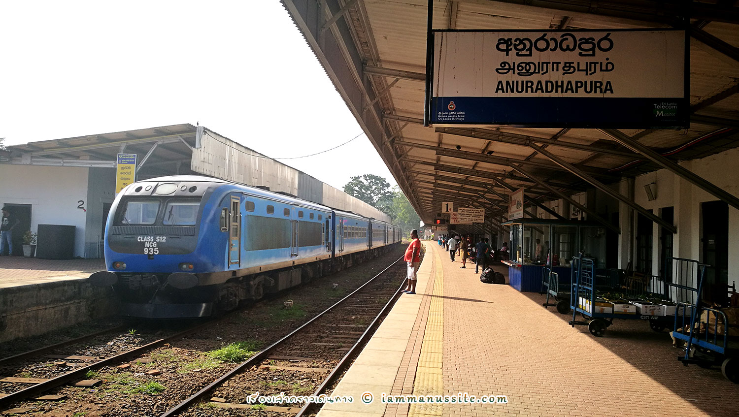 Anurathpura Train Station ใหญ่โตแต่เงียบเหงา ตัวอาคารสถานีสวยงามพอสมควร ระหว่างรอรถไฟก็เดินถ่ายรูปเล่นได้ไม่เบื่อ รถไฟขบวน 4018 เป็นรถไฟรุ่นเก่า มาถึงสถานีช้ากว่าเวลา 9:02 ตามตารางนิดหน่อย Reserve Car มีคนนั่งเต็มเกือบทุกที่นั่ง รถไฟสายนี้เหมือนรถไฟไทยมากที่สุด มีคนหิ้วของขึ้นมาขายตลอดเวลา ทั้งขนม ของว่าง ผลไม้ ชา กาแฟ ขาดก็แต่ไก่ย่าง