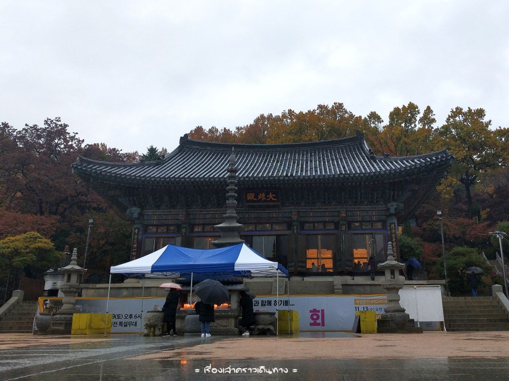 📌 วัดพงอึนซา 봉은사 (ฺBongeunsa Temple) วัดใหญ่ใจกลางเมือง ที่คนเกาหลีนับถือมากราบไหว้ทำบุญกันมากมาย เคยมาเมื่อหลายปีที่แล้ว คราวนี้พอมีเวลาเลยนึกอยากกราบไหว้ขอพรสักหน่อย แต่มาวันนี้ดวงไม่ดี ฝนตก เพื่อที่หิมะจะตามมา(ในอีกวันที่เรากลับเมืองไทยแล้ว เสียใจ) เพราะฝนตกวันนี้ในวัดจึงเงียบเหงาหน่อย แต่ก็มีพอมีนักท่องเที่ยวเข้ามาประปราย คนเกาหลีก็พอมีบ้าง