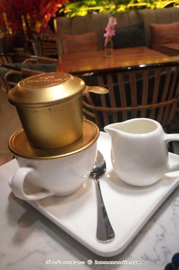 ร้านกาแฟที่เพื่อนฮ่องกงบอกว่าเราต้องไป! นางมาตามรีวิวว่าร้านนี้มันสวยเก๋ คาเฟ่นี้อยู่ใน Saigon Centre เข้าประตูห้างไปอยู่ชั้น 1 เลย คนเต็มอยู่ตลอดต้องรอคิวแต่ไม่นานมาก คนเวียดนามไม่ค่อยนั่งแช่เท่าไหร่ ด้านในร้านจะว่าสวยเก๋ก็ไม่เชิง ก็มีการตกแต่งให้เหมือนอยู่ในสวนสไตล์ยุโรปหน่อยๆ แต่มันมืดๆทึมๆ และโต๊ะติดกันเกินไปหน่อย แต่คนก็มาถ่ายรูปกันเยอะอยู่ ส่วนชากาแฟก็ถือว่าใช้ได้ กาแฟเวียดนามแบบพรีเมี่ยมมาเป็นชุดสีทองเลย