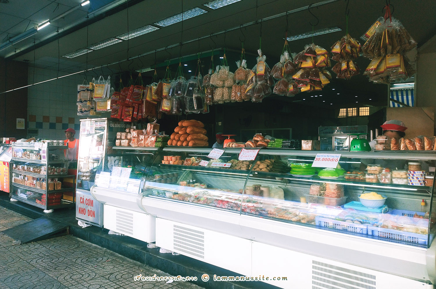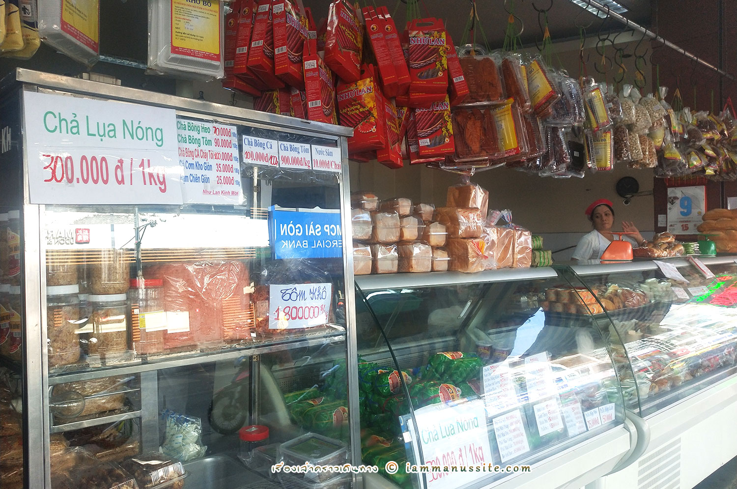 วันสุดท้ายก่อนไปสนามบิน เพื่อนคนฮ่องกงบอกให้คนขับรถพาไปซื้อของฝากหน่อย คนขับวนรถไปร้านขายของ ถึงได้รู้ว่านางอยากซื้อหมูยอ นางว่าร้านนี้ดัง (นางมาตามรีวิวอีกล่ะ 55) ได้หยิบมาชิม เราว่าก็ไม่เท่าไหร่ หมูยอแถวอิสานบ้านเราอร่อยกว่า เลยไม่ได้ซื้อมา ใครสนใจก็ไปซื้อได้ ร้านเขาขายหลายอย่างอยู่ ร้านนี้อยู่ใกล้ๆตลาดเติ้นดิง (Chợ Tân Định) มีเวลาเข้าไปเดินเล่นในตลาดก็ได้ ขายของทั่วไปเหมือนตลาดเบนถั่น