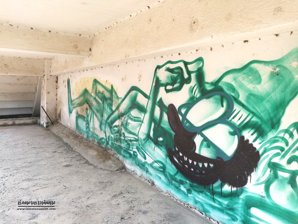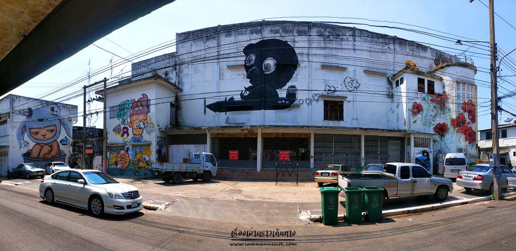 พิกัด 2 : หันหลังให้ด้านหน้าของโรงหนัง เดินข้ามถนนไปฝั่งตรงข้าม เข้าซอยเชาวน์พัฒนา ไปนิดนึง จะมีเวิ้งกว้างด้านขวามือ ตรงนี้มีกราฟฟิตี้ตลอดผนัง 2 ด้าน รูปใหญ่ลายสวย เดินไปจนทะลุซอยเชาวน์ศรัทธา ได้เลย