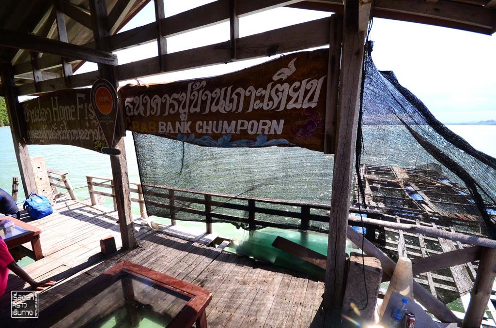 จากสนามบินชุมพรที่ อ.ปะทิว เราขับรถย้อนกลับขึ้นไปทางเหนือ 45 กม. เพื่อไปบ้านเกาะเตียบ ใช้เวลาเกือบๆ 1 ชั่วโมง ถนนดี ขับง่าย เราจะนั่งเรือจากบ้านเกาะเตียบข้ามไปกินปูกันที่ธนาคารปูเกาะยอ การจะไปกินปูนี้มีทัวร์จัดรวมกับการไปดำน้ำอยู่เยอะแยะ ส่วนมากไปดำน้ำเกาะร้านเป็ดร้านไก่ เห็นรูปแล้วสวยเหมือนกัน แต่เราเลือกแค่นั่งเรือข้ามไปกินปูก็เลยติดต่อตรงที่คุณสุคนดูแลร้านอาหารบนเกาะยอเลย
