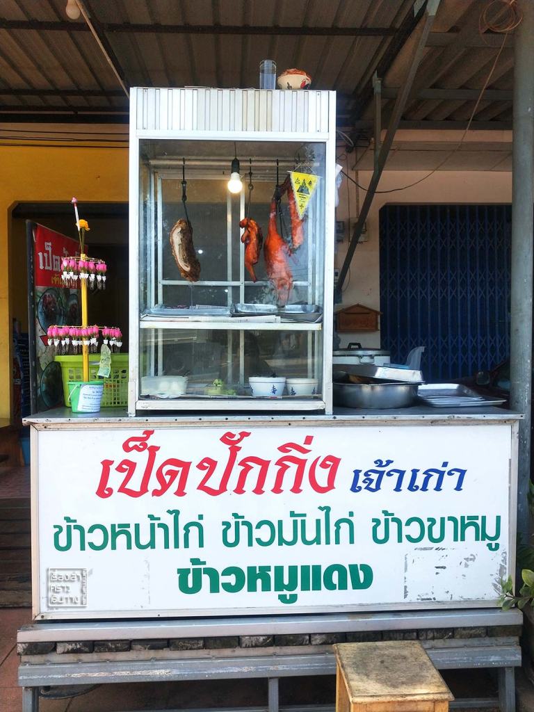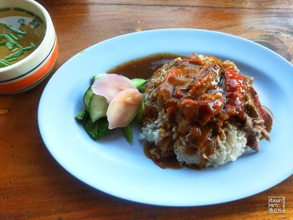 แสงแดดเริ่มแรงขึ้นกลับที่พักไปอาบน้ำแต่งตัว แล้วออกเดินทางต่อดีกว่า เช้านี้ไม่ได้สั่งอาหารเช้าของที่พัก แต่ขับออกไปมองหาอะไรกินตามที่เจอ เห็นร้านชื่อ”เป็ดปักกิ่งเจ้าเก่า” ป้ายเบ้อเร่อก็เลยแวะ ไม่ใช่เหลาขายเป็ดปักกิ่ง แต่มีข้าวมันไก่ ข้าวหมูกรอบ ข้าวหน้าเป็ด ก๋วยเตี๋ยว เลยสั่งข้าวหน้าเป็ด ข้าวหมูกรอบมาลองชิมกัน อร่อยใช้ได้