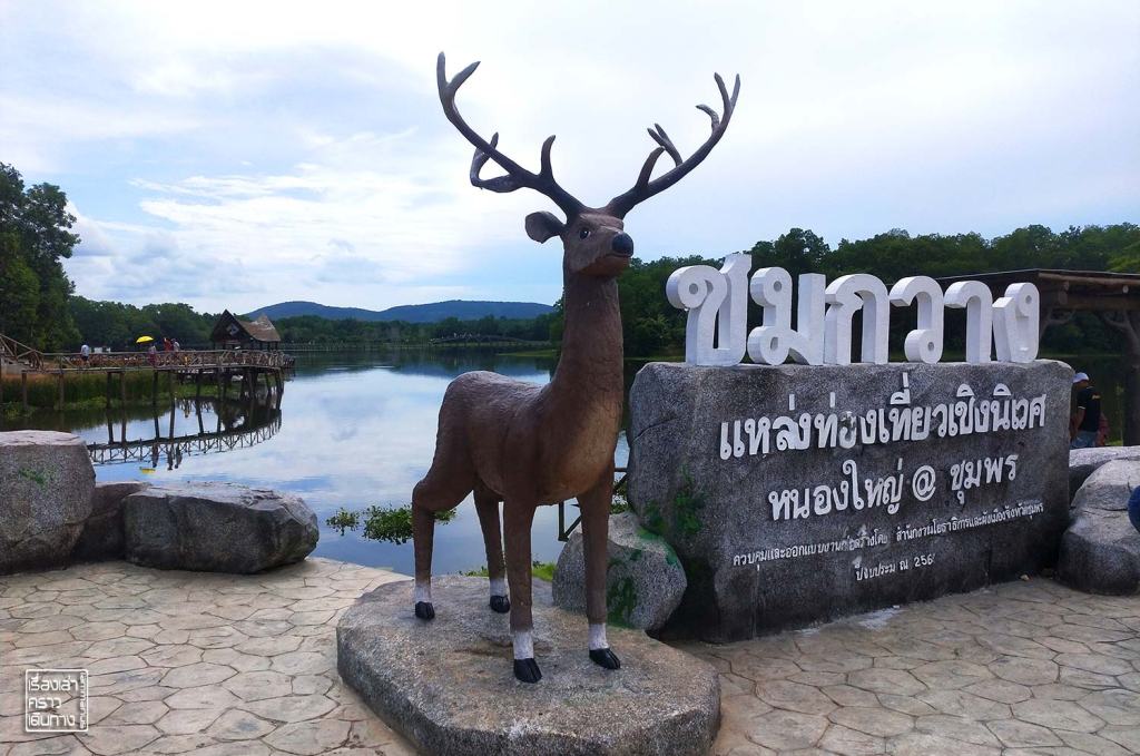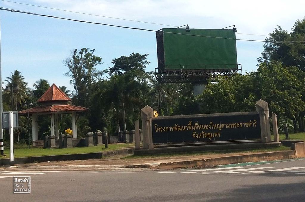 อิ่มท้องแล้ว ไปที่เที่ยวที่แรกของวันนี้เลยอยู่ในเขตอำเภอเมืองชุมพรนี่เอง “โครงการพัฒนาพื้นที่หนองใหญ่ตามพระราชดำริ” บางคนก็เรียกว่า “แก้มลิงหนองใหญ่” เพราะในหลวงร.๙ มีพระราชดำริถึงแนวทางแก้ไขปัญหาน้ำท่วมจังหวัดชุมพรว่า สำรวจพื้นที่แล้วพบว่าที่หนองใหญ่มีหนองน้ำที่เหมาะทำแก้มลิงเพื่อเป็นที่พักน้ำก่อนจะระบายลงสู่ทะเล โดยมีการขุดคลองย่อยต่างๆนำน้ำเข้าออก ซึ่งมีโครงการขุดคลองอยู่แล้ว แต่ช้าไม่ทันการในหลวงจึงมีรับสั่งให้เร่งดำเนินงานโดยให้งบสนับสนุนจากมูลนิธิชัยพัฒนาลงไปเพิ่มเติม จึงได้ทำสำเร็จอย่างรวดเร็วในปี 2542 ต่อมาชาวชุมพรมีการต่อยอดโครงการด้วยการสร้างศูนย์เรียนรู้โครงการหนองใหญ่ขึ้น แนะนำการนำทฤษฏีเศรษฐกิจพอเพียงมาปรับใช้ในชีวิต
