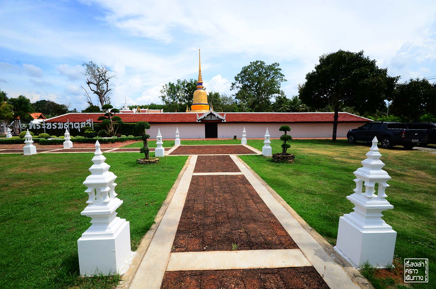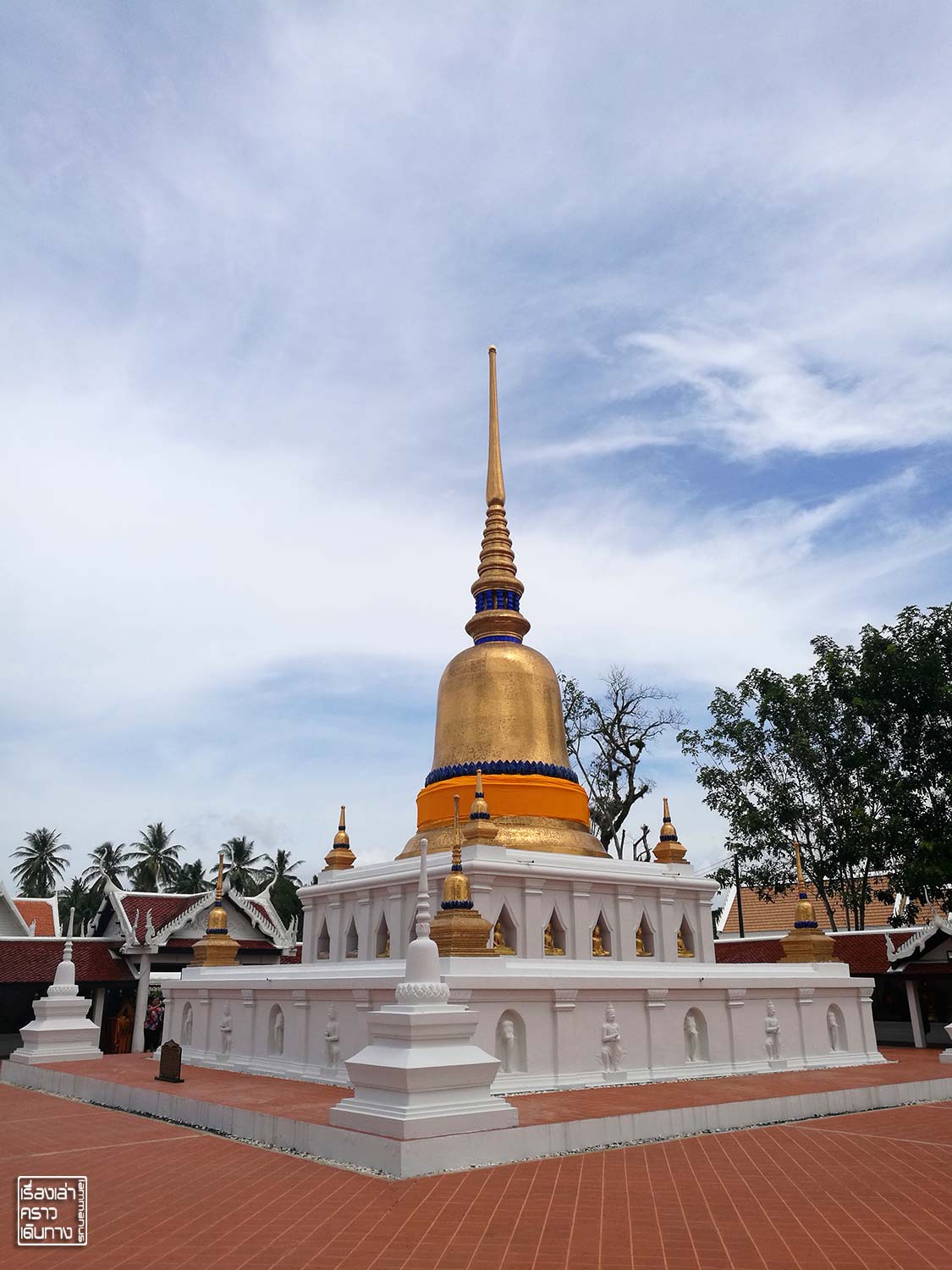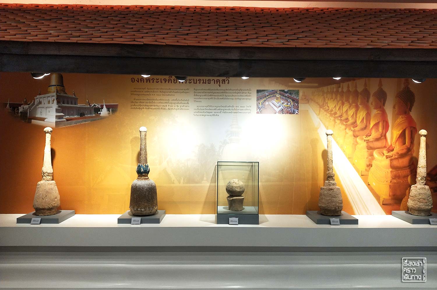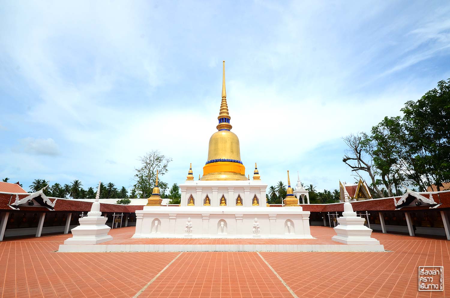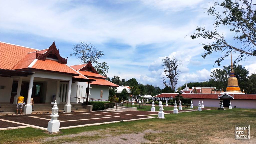 ออกจากพิพิธภัณฑ์ก็เดินเลี้ยวซ้ายไปนมัสการองค์พระบรมธาตุ ประวัติความเป็นมายืนอ่านเอาจากป้ายว่า น่าจะมีองค์พระธาตุมานานแล้วแต่ได้หักพังลงไป จนพระเจ้าศรีธรรมาโศกราชยกทัพผ่านมาพบเข้าจึงให้บูรณะองค์เจดีย์และบรรจุผอบทองคำที่มีพระบรมสารีริกธาตุไว้ตามเดิม