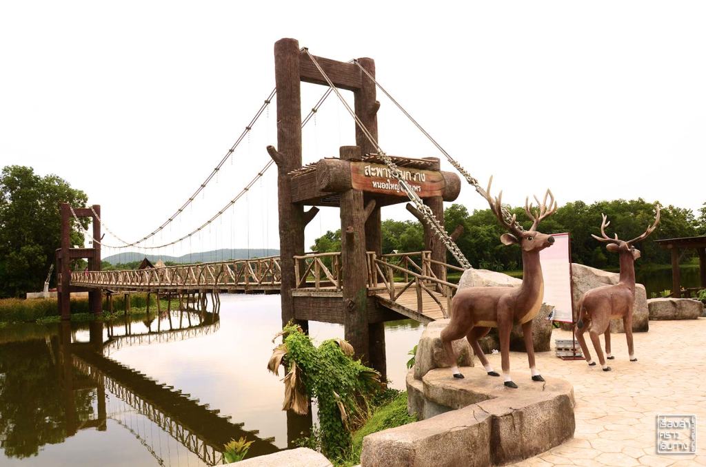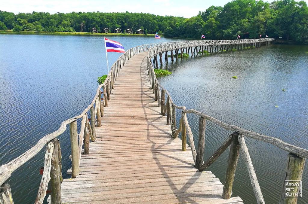 ในโครงการมีจุดที่นักท่องเที่ยวนิยมมาเที่ยวชมคือ “สะพานไม้เคี่ยม” เป็นสะพานไม้ยาว 290 ม. สร้างข้ามหนองน้ำไปที่เกาะกลางน้ำ โดยใช้ไม้เคี่ยมที่มีความคงทนสร้างด้วยวิชาช่างพื้นบ้าน สะพานมีความคดโค้งไปมา ดูสวยดี นักท่องเที่ยวก็เลยชอบไปเดินเล่นถ่ายรูปกัน ควรไปแต่เช้าๆหรือช่วงบ่ายแก่ๆ แสงจะดีและจะได้ไม่ร้อนมาก