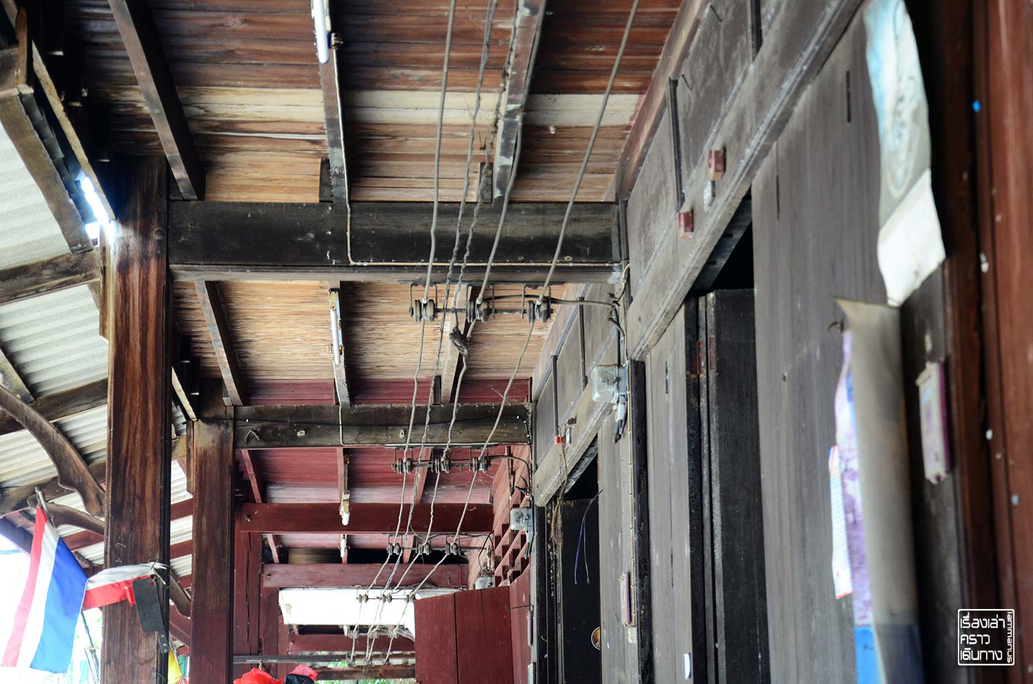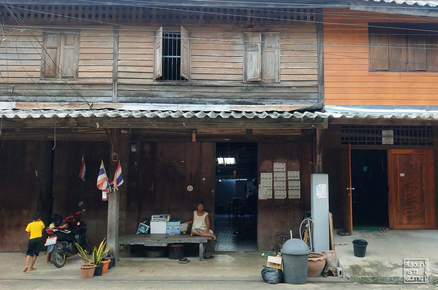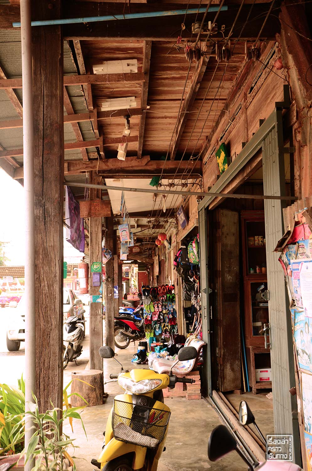 เดินวนฝั่งนี้ได้สักพัก ก็กลับมาที่สถานีรถไฟ คราวนี้เดินออกหลังสถานี ไปอีกฝั่ง ฝั่งนี้เรียกว่า“ชุมชนตลาดล่าง ๑๐๐ ปี” ฝั่งนี้จะเงียบกว่าอีกฝั่ง พวกเราเดินไปตามถ.วานิชบำรุง หัวถนนเริ่มจากทางรถไฟสายใต้ ท้ายถนนจรดแม่น้ำสวี ลักษณะบ้านเป็นแบบห้องแถวไม้สองชั้น ใช้เป็นบ้านเช่าพักอาศัยและค้าขาย มีช่องทางเดินด้านหน้าใต้พื้นชั้นบน ค้ำด้วยเสาลอยสี่เหลี่ยมเดินได้ยาวต่อเนื่องตลอดแถว บานประตูเป็นบานเฟี้ยมไม้ มีลวดลายฉลุไม้ประดับบนหน้าจั่วบ้าง ราวระเบียงบ้าง ใครชอบสถาปัตยกรรมบ้านไม้เก่าแก่มาเดินตรงนี้คงชอบ เดิมทีตลาดล่างนี้คึกคักด้วยผู้คน มีโรงเรียน มีโรงหนัง มีร้านค้า มีโรงสีข้าว มีตลาด มีโรงเลื่อยริมแม่น้ำรับไม้ซุงที่ล่องมาตามแม่น้ำ ชุมชนตลาดล่างเป็นย่านการค้าขายสำคัญของสวี มีการขนส่งทางเรือที่มาตามแม่น้ำ แล้วขนของขึ้นลงส่งต่อไปสถานีรถไฟ ตอนนี้ชุมชนตลาดล่างเงียบเหงาลงไปหลังจากมีการตัดถนนใหม่ใหญ่โตสะดวกสบาย การเดินทางทางน้ำก็เลยหมดความนิยมไปในที่สุด