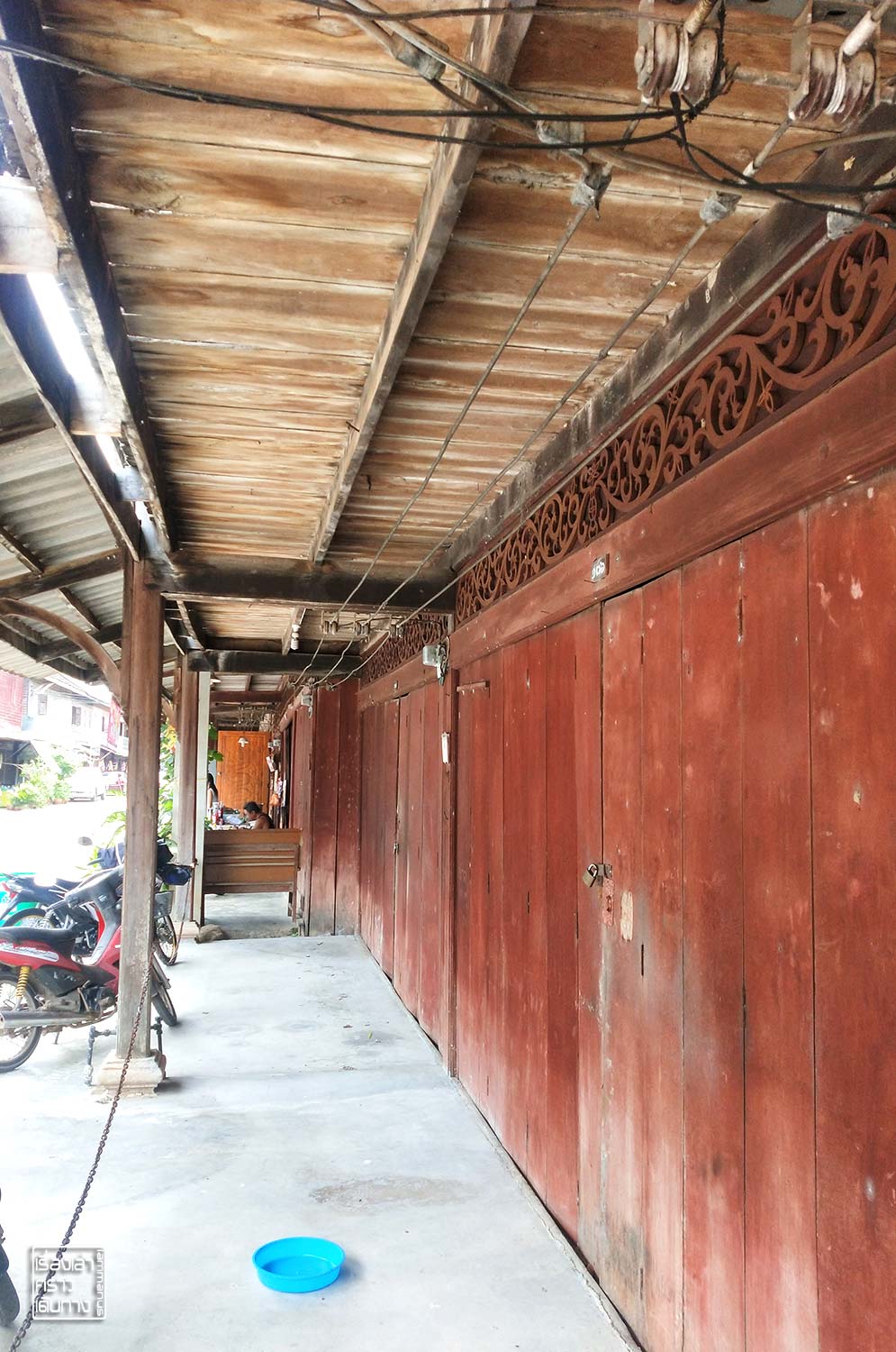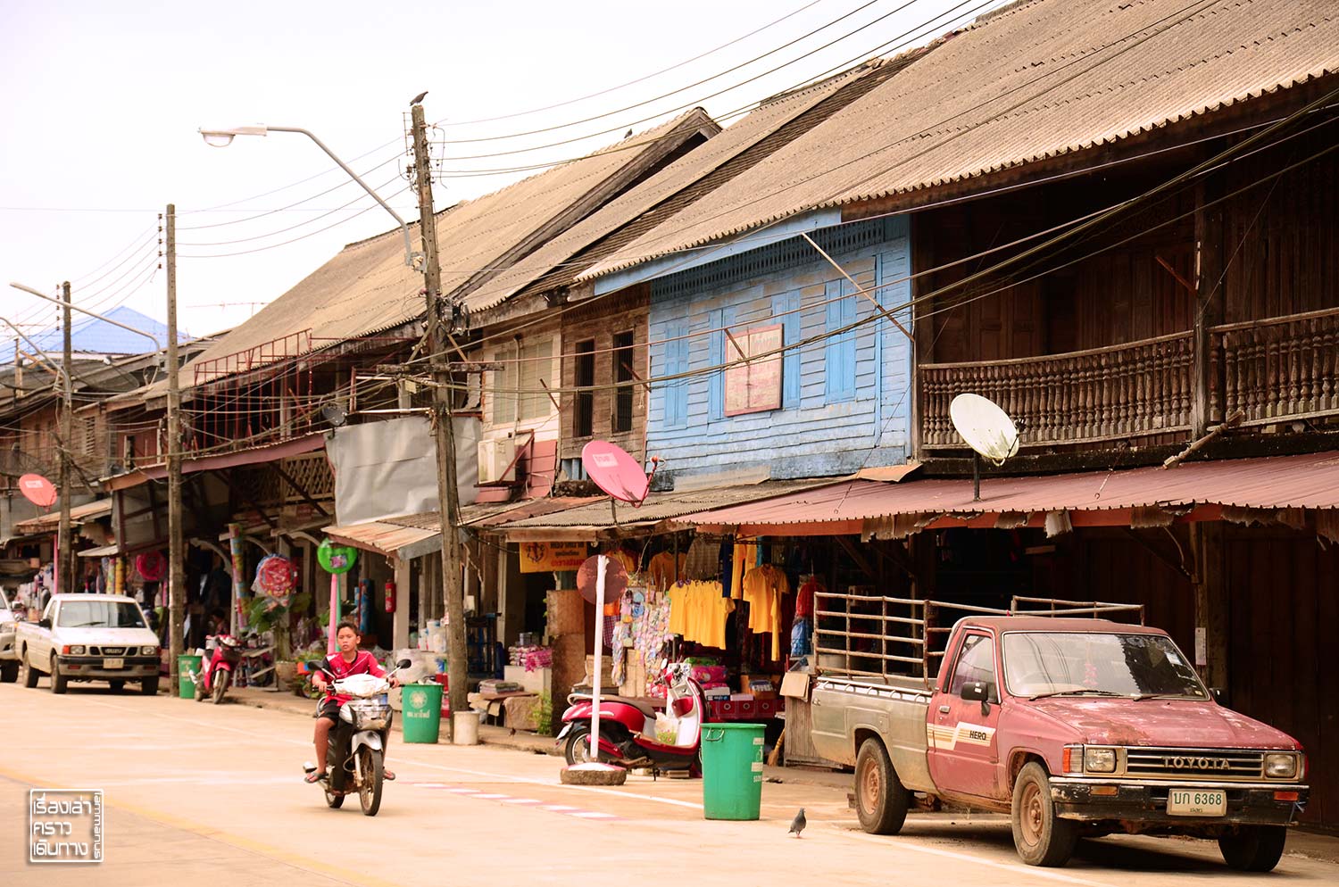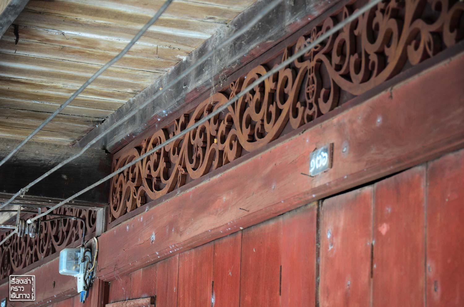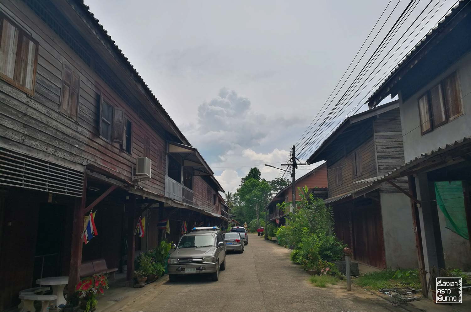 เดินวนฝั่งนี้ได้สักพัก ก็กลับมาที่สถานีรถไฟ คราวนี้เดินออกหลังสถานี ไปอีกฝั่ง ฝั่งนี้เรียกว่า“ชุมชนตลาดล่าง ๑๐๐ ปี” ฝั่งนี้จะเงียบกว่าอีกฝั่ง พวกเราเดินไปตามถ.วานิชบำรุง หัวถนนเริ่มจากทางรถไฟสายใต้ ท้ายถนนจรดแม่น้ำสวี ลักษณะบ้านเป็นแบบห้องแถวไม้สองชั้น ใช้เป็นบ้านเช่าพักอาศัยและค้าขาย มีช่องทางเดินด้านหน้าใต้พื้นชั้นบน ค้ำด้วยเสาลอยสี่เหลี่ยมเดินได้ยาวต่อเนื่องตลอดแถว บานประตูเป็นบานเฟี้ยมไม้ มีลวดลายฉลุไม้ประดับบนหน้าจั่วบ้าง ราวระเบียงบ้าง ใครชอบสถาปัตยกรรมบ้านไม้เก่าแก่มาเดินตรงนี้คงชอบ เดิมทีตลาดล่างนี้คึกคักด้วยผู้คน มีโรงเรียน มีโรงหนัง มีร้านค้า มีโรงสีข้าว มีตลาด มีโรงเลื่อยริมแม่น้ำรับไม้ซุงที่ล่องมาตามแม่น้ำ ชุมชนตลาดล่างเป็นย่านการค้าขายสำคัญของสวี มีการขนส่งทางเรือที่มาตามแม่น้ำ แล้วขนของขึ้นลงส่งต่อไปสถานีรถไฟ ตอนนี้ชุมชนตลาดล่างเงียบเหงาลงไปหลังจากมีการตัดถนนใหม่ใหญ่โตสะดวกสบาย การเดินทางทางน้ำก็เลยหมดความนิยมไปในที่สุด