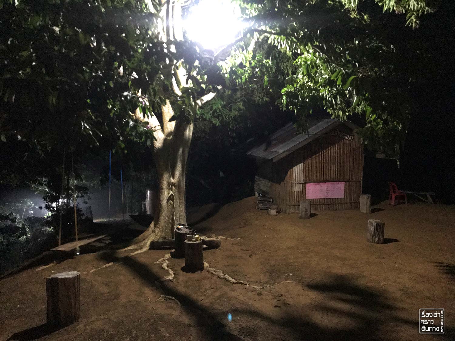 ถึงเวลาอาบน้ำ ต้องเดินลงเนินไปนิดหน่อย มีห้องน้ำ 4 ห้อง อาบน้ำได้ 1 ห้อง แต่สะอาดดี น้ำเป็นประปาภูเขา เย็นชุ่มฉ่ำใจดี ช่วงกลางคืนมีไฟแขวนตามทางเดินพอให้เดินได้ไม่มืด นับว่าสะดวกสบายพอสมควร กลางคืนอากาศเย็นสบาย ราตรีสวัสดิ์