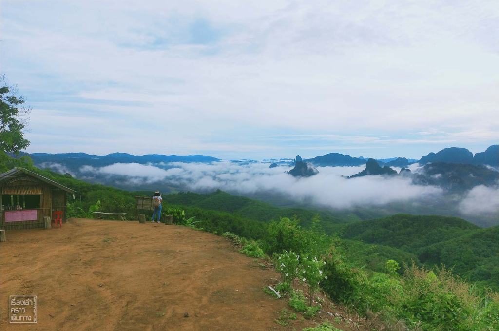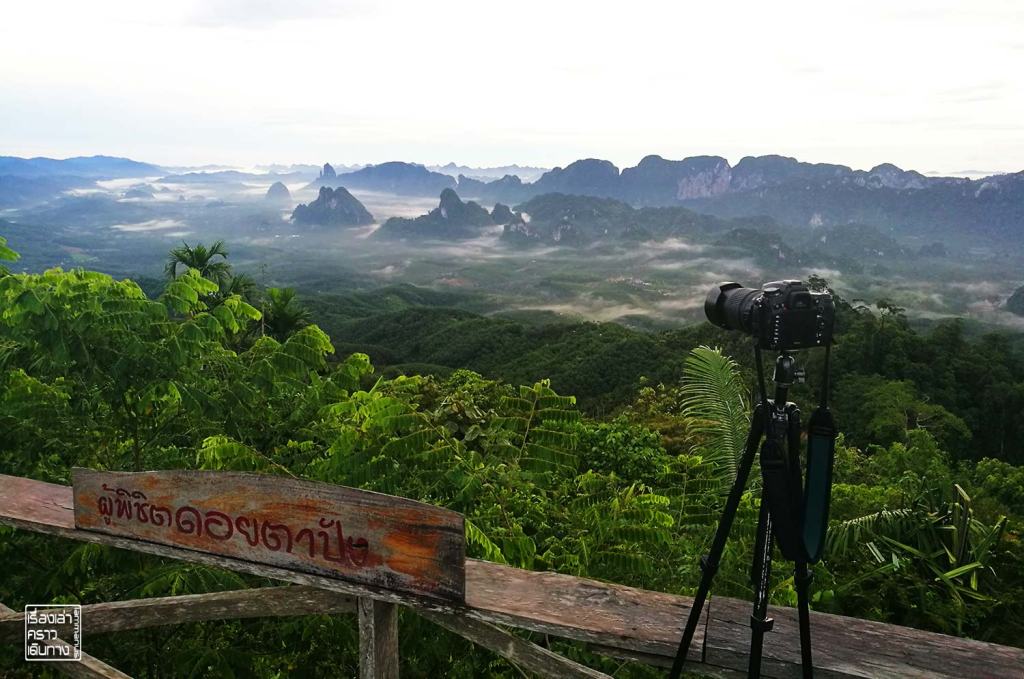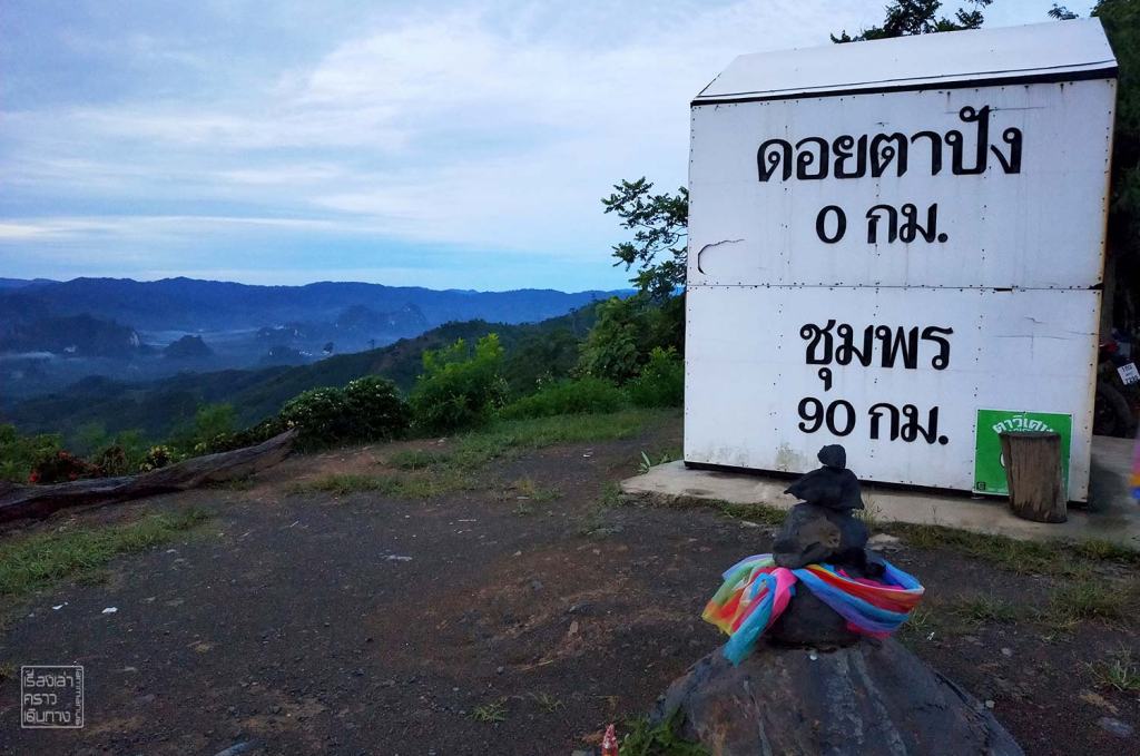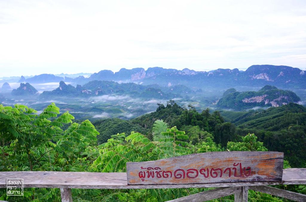 ตื่นเช้าออกมาชมทะเลหมอกที่วันนี้มีมากกว่าเมื่อตอนเย็นหน่อย แต่มีแค่นี้ก็รู้สึกว่ามันสวยมากแล้ว หุบเขาสลับซับซ้อนมีหมอกขาวๆลอยแทรกตัวอยู่ดูชวนฝันไม่น้อย ได้เวลานัด พี่คนขับก็ขึ้นมาถึง พาเรานั่งรถต่อไปอีกไม่ไกลที่ยอดดอยตาปัง ด้านบนมีนักท่องเที่ยวที่เหมารถขึ้นมาชมวิวตอนเช้าอยู่ที่ลานชมวิวบ้างแล้วแต่ไม่ได้หนาแน่น ก็เดินหามุมที่ชอบรอแสงแรกของวันนี้ แต่ก็เหมือนจะเกิดเหตุการณ์เดียวกับเช้าเมื่อวาน เพราะเมฆมาบังดวงอาทิตย์จนมิด เห็นแต่แสงเรื่อๆ แต่ความสวยของทิวทัศน์โดยรอบทดแทนได้ จุดชมวิวบนนี้คล้ายที่ลานลมโชย แต่อยู่สูงกว่าได้มุมมอง 360 องศา เลย มองไปเห็นถึงระนอง วันที่อากาศดีๆฟ้าใสเห็นทะเลด้วยซ้ำ