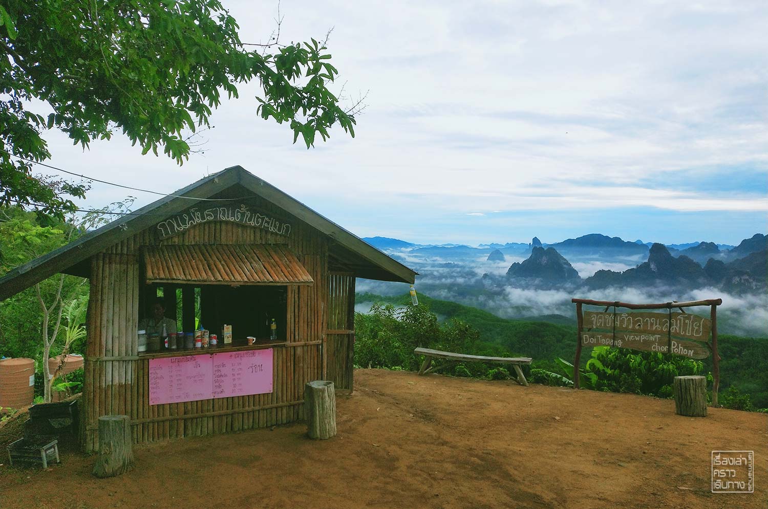 ฝั่งตรงข้ามร้านค้าที่เราไปลงทะเบียนกับรับเต้นท์ มีร้านกาแฟน่ารัก “มะลิลาคาเฟ่” เป็นจุดนัดพบจุดรวมพลก่อนขึ้นดอยตาปังด้วยเหมือนกัน แต่วันนี้เราจัดกาแฟมาคนละ 2 แก้วแล้วจะจัดอีกก็ไม่ไหว เลยได้แค่เดินไปชมร้าน เพราะวิวสวยใช้ได้ ติดๆกับร้านกาแฟเปิดขายอาหารตามสั่งด้วย ถัดไปเป็นที่พักอีกด้วย เป็นเต้นท์อยู่ในหลังคา วิวสวยเหมือนกันมีหุบเขาล้อมรอบ วันนี้มีฝนปรอยๆก็มีหมอกลอยอ้อยอิ่งสวยงาม ถ้าเช้าๆก็คงสวยเหมือนกัน ใครไม่อยากขึ้นไปนอนบนดอย นอนตรงนี้ก็ได้ แล้วเหมารถขึ้นตอนเช้า > อ่านเพิ่มเติมใน | Chumporn coffee |