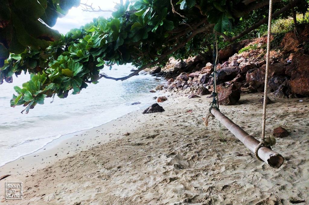 เราเลือกจะเดินลัดเลาะหาดหินจากรูปปั้นม้าน้ำไปอีกทางเพื่อเดินไปหาดท้องตม ชายหาดแห่งเดียวของบ้านท้องตมใหญ่ ปีนป่ายหินลัดเลาะไปไม่กี่ร้อยเมตรก็ถึงเวิ้งหาดขนาดเล็ก มีชิงช้าแขวนใต้ต้นไม้ให้นั่งเล่นรับลมเย็นๆ ใครชอบเล่นน้ำหรือจะอาบแดดก็มาตรงนี้ได้ อาจไม่สะดวกนักเพราะต้องเดินปีนหาดหินมา ปีนไปปีนกลับ