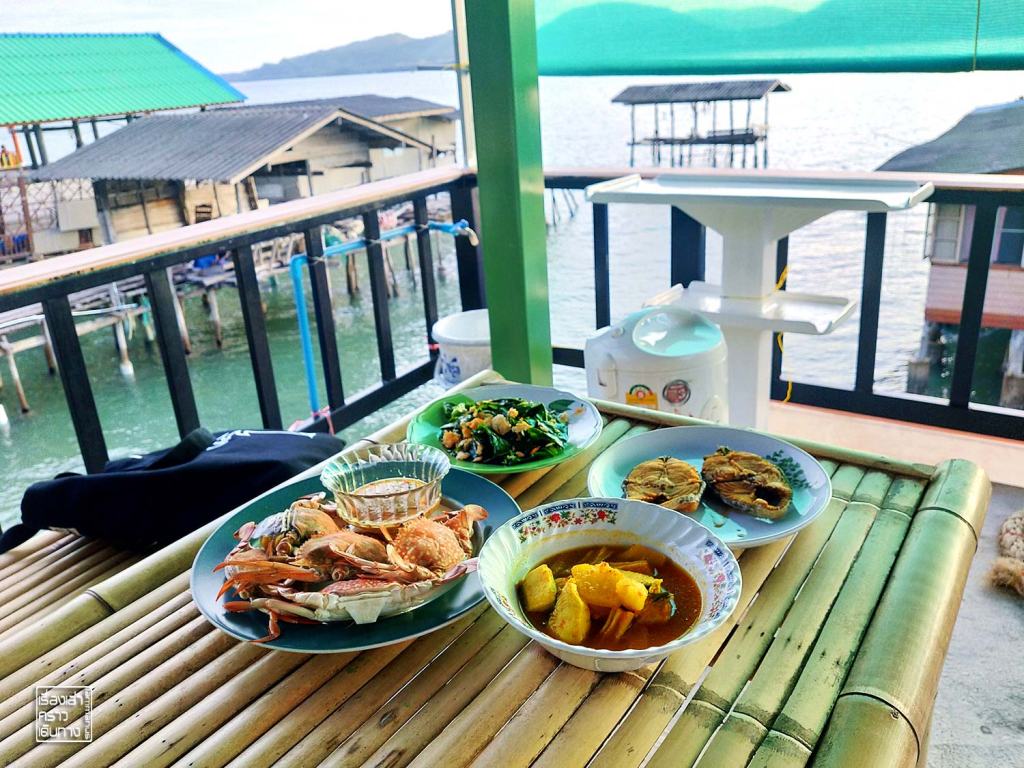 นั่งเรือมาสิบนาทีก็ถึงแล้ว ใกล้นิดเดียว พี่ดำถามว่าจะวนเรือชมวิวก่อนหรือกินก่อน เราบอกกินก่อนหิวแล้ว ก็เลยตรงไปเกาะยอเลย ขึ้นไปกินก่อน มีเจ้าหน้าที่คอยดูแลจัดการได้ดี พาไปที่นั่งแล้วรออาหารไม่นานมีจัดชุดมาให้เลย อิ่มมากสำหรับเรา 2 คน ลมพัดเย็นสบายดี อิ่มแล้วเดินไปเที่ยวเล่นที่บนเกาะยอได้ เป็นเกาะเล็กๆ แต่เดินวนรอบเกาะได้ ถ่ายรูปทะเลสวยๆได้หลายมุม ถามเจ้าหน้าที่ว่าที่นี่เป็นธนาคารปูยังไง ได้รับคำอธิบายว่า ตอนนี้ไม่ได้เป็นธนาคารปูแล้ว เพราะน้ำร้อนขึ้น ปูตาย จึงไม่ทำธนาคารปูตรงนี้แล้ว แต่ทำเป็นจุดพักทานอาหาร ดำเนินการโดยชุมชนบ้านเกาะเตียบ ปูก็จากชุมชน เรือก็ของชาวบ้านเกาะเตียบ