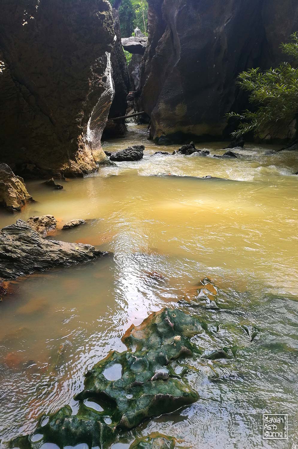 พวกเราเดินลุยน้ำเล่นกันไปไม่ไกล ก็ย้อนกลับขึ้นบันไดไปเดินด้านบน ไปอีกไม่กี่สิบเมตรมีทางลงอีกแต่ไม่ได้เป็นบันได ตรงนี้ลงไปจะเจอแก่งเล็กๆ น่าจะเล่นน้ำได้อยู่ถ้าอยากเล่น แต่ตอนเราไปน้ำจะขุ่นๆหน่อย ก็ได้แค่ลงไปถ่ายรูปแล้วก็กลับ