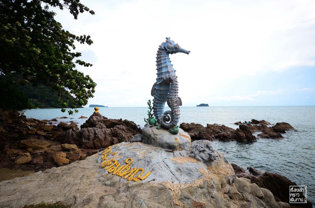 จอดรถที่พักแล้วเดินเล่นไปที่สุดถนน เห็นรูปปั้นเจ้าม้าน้ำม้วนหางสัญลักษณ์ของบ้านท้องตมใหญ่เด่นอยู่ริมหาดหิน ข้างๆจะเป็นสะพานปลาทอดยาวออกไปที่ทะเล ยิ่งเย็นจะยิ่งมีคนมาที่สะพานปลาเยอะขึ้นเรื่อยๆ ต่างคนต่างหิ้วอุปกรณ์พะรุงพะรัง “เขามาตกปลากัน” พี่นกเจ้าของที่พักเราเล่าว่า ส่วนมากเป็นคนนอกหมู่บ้าน รวมกลุ่มกันมานั่งตกปลามีของกินของดื่มติดมาด้วย เหมือนเป็นการสังสรรค์พักผ่อนอย่างหนึ่ง หลายคนนั่งตั้งแต่เย็นจนดึก บางคนอยู่ถึงเช้า เป็นอย่างนี้ทุกวัน
