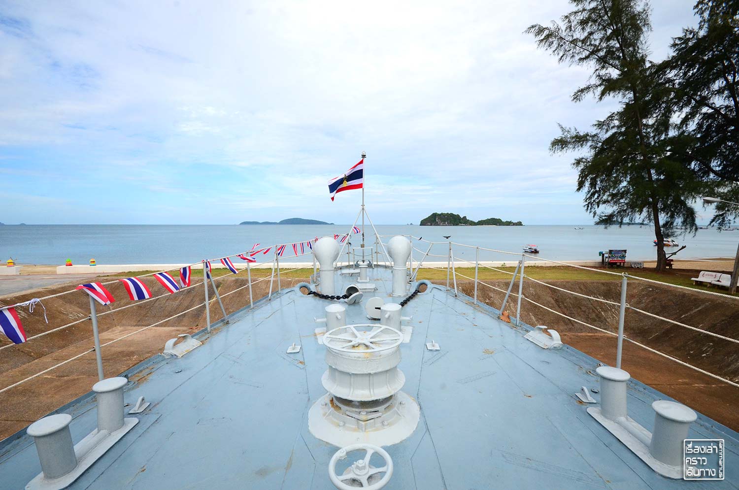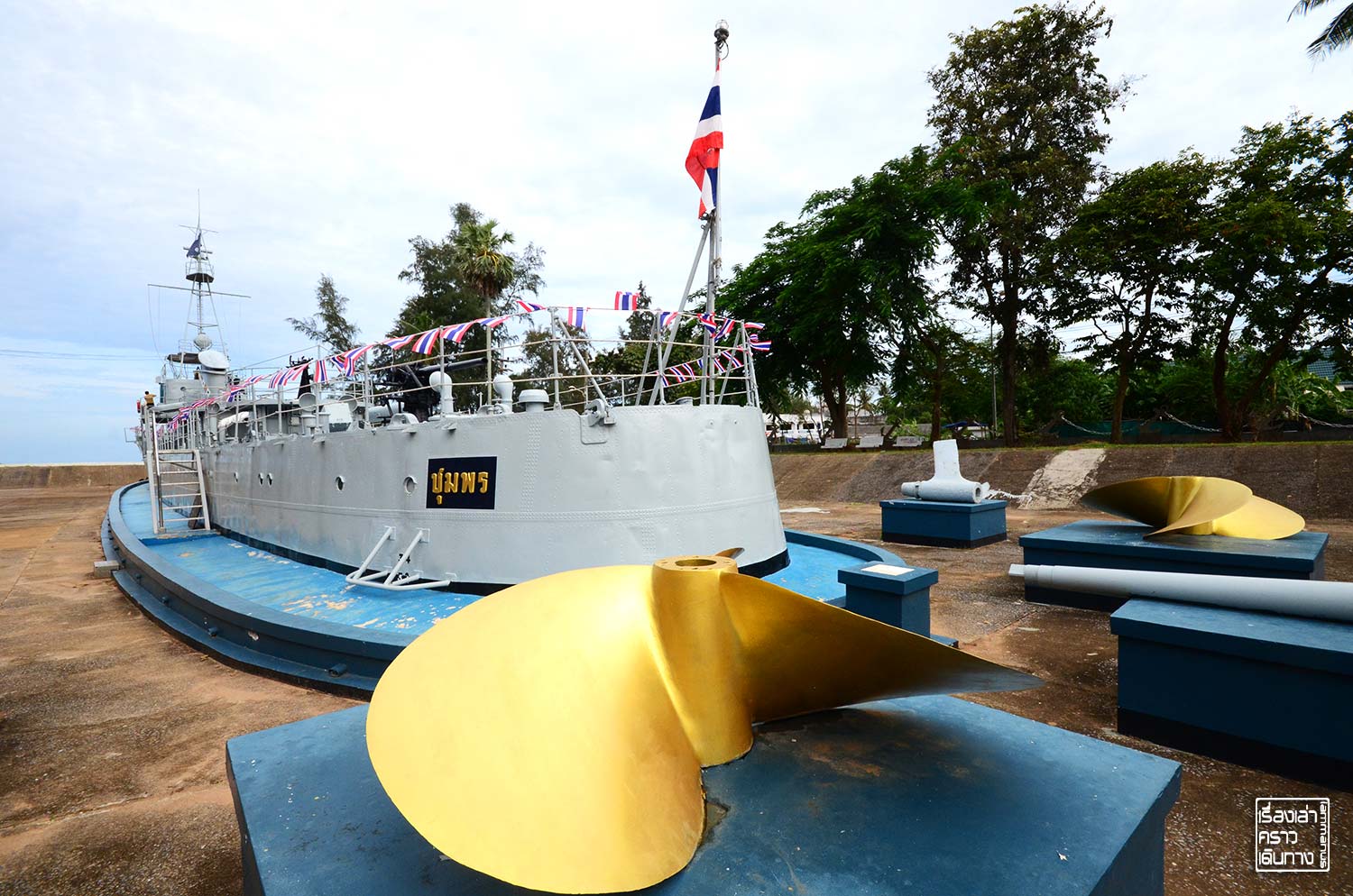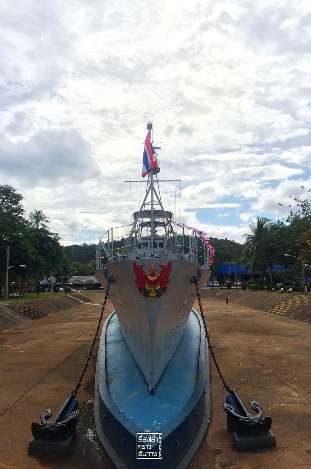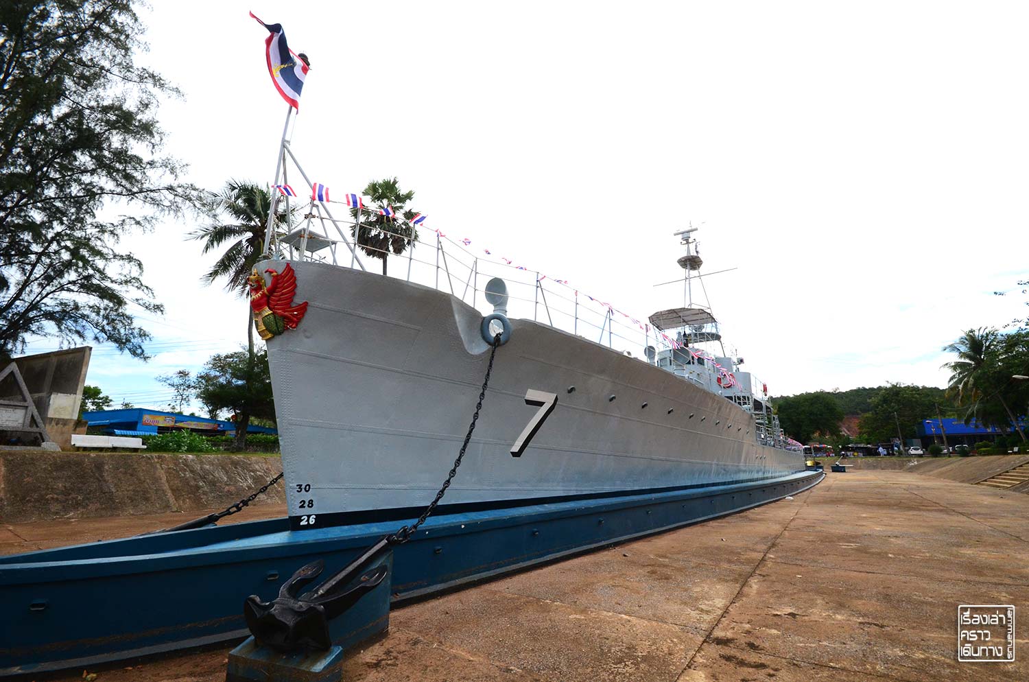 นมัสการเสด็จเตี่ยเสร็จก็ลงมาด้านล่าง ไปดูเรือรบหลวงชุมพร เรือรบตอปิโดของจริง ที่ปลดระวางในปี พ.ศ. 2518 แล้วกองทัพเรือเอามาตั้งให้ประชาชนเข้าไปดูได้ โดยฝังเรือรบไว้ริมหาดทรายรี โผล่ขึ้นมาแต่ส่วนบน เดินขึ้นไปด้านบนได้เลย ไต่บันไดขึ้นไปได้ทั่ว เรือรบหลวงชุมพรมีขนาดเต็มๆลำ ใหญ่ ยาว 68 เมตร และกว้าง 6.55 เมตร