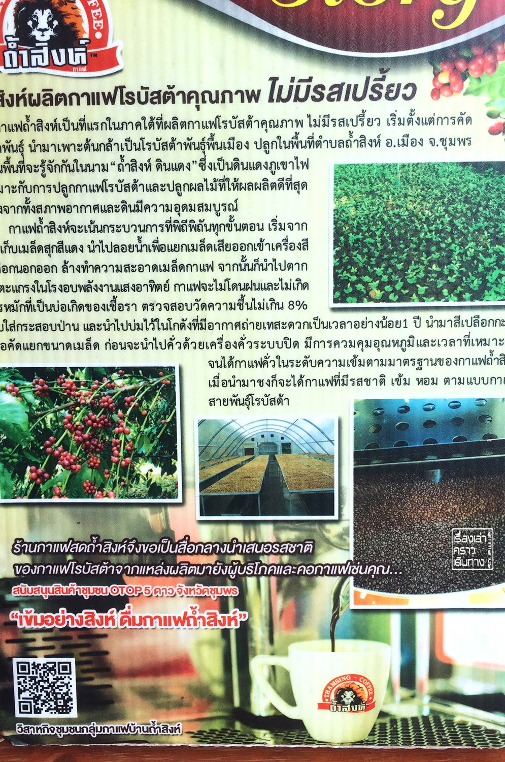 ขับรถกลับมาผ่านอ.สวีอีกรอบ ขอแวะร้านกาแฟ ST แบรนด์กาแฟเก่าแก่อีกแบรนด์ของชุมพร ที่โรงคั่วและบรรจุกาแฟ ST มีเปิดร้านอาหารและร้านกาแฟอยู่ด้านหน้าด้วย มาแวะชิมกาแฟโรบัสต้าหน่อย ไม่คิดเลยว่ากาแฟโรบัสต้าจะปรับให้ได้รสชาติดีขึ้นมาก ประทับใจ เลยซื้อเมล็ดกาแฟกลับมาด้วย > อ่านเพิ่มเติมใน | Chumporn coffee |