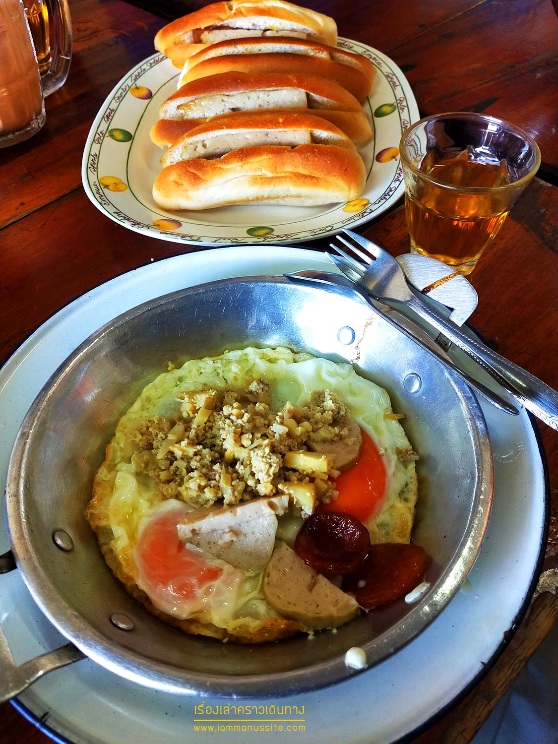 เริ่มต้นยามเช้าที่อุดร ด้วยไข่กระทะ กับขนมปังสอดไส้ ที่ร้าน ราชาไข่กระทะ เพื่อนบอกว่าถ้าร้านดังจริงๆต้องร้าน คิงส์โอชา แต่คนเยอะ คนอุดรจะหนีนักท่องเที่ยวมากินที่ราชากัน ราชาไข่กระทะอยู่ตรงทุ่งศรีเมือง (ชื่อซ้ำกับที่อุบลฯนั่นแหละ) เชิญมาชิมได้ นอกจากไข่กระทะแล้ว ข้าวสตูว์ไก่ก็ดี ข้าวไข่เจียวก็เด็ด หมูยอดทอดก็เริ่ด ไข่เจียวมาเป็นก้อนอย่างกะไข่เจียวปูเจ้ไฝเลยนะ