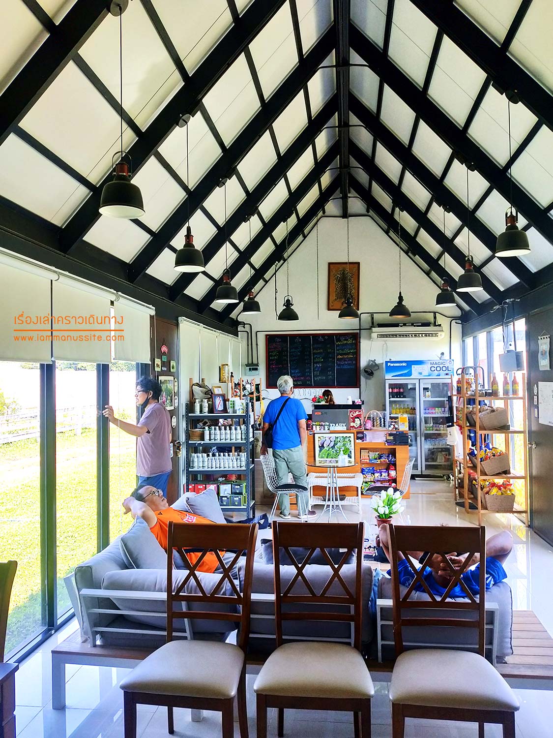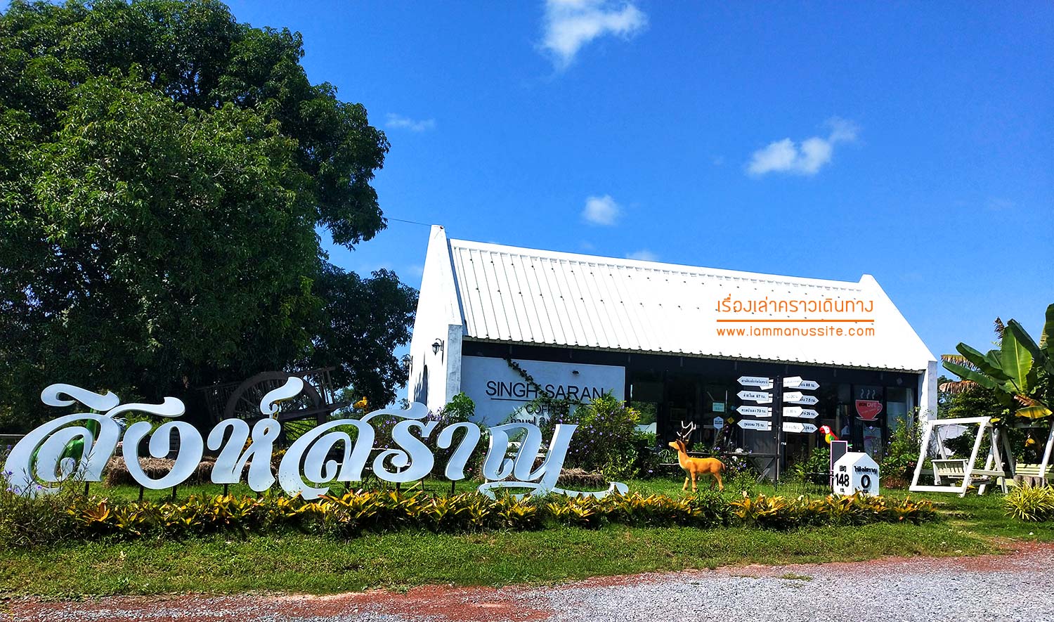 ออกจากเมืองอุดรมาได้ไม่ไกล สมาชิกก็เรียกร้องขอพักจิบกาแฟกันแล้ว (เมื่อไหร่จะถึง ฮา….) เจอร้านกาแฟดูดีกว่าที่คิด โผล่มากลางทาง เลี้ยวรถทันที สิงห์สราญ คอฟฟี่ ร้านกาแฟที่อ.บ้านผือ ที่นี่เป็นไร่ด้วย ด้านหลังร้านเป็นสวนมะนาว ร้านจัดได้เก๋ไก๋สมกับเป็นร้านของอดีตผู้ว่าจังหวัดอุดรธานีนี่เอง (เพื่อนเห็นรูปเจ้าของ บอกว่าคนอุดรรู้จักดี)