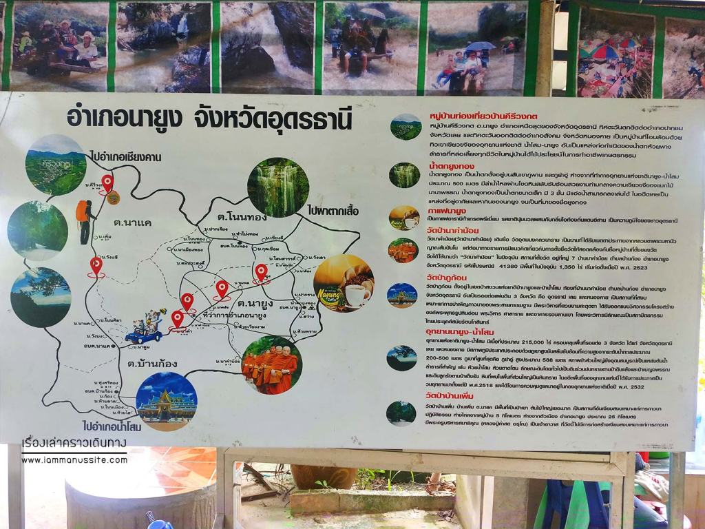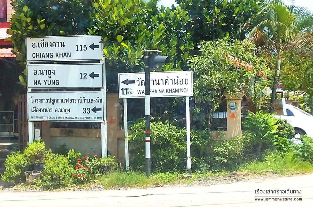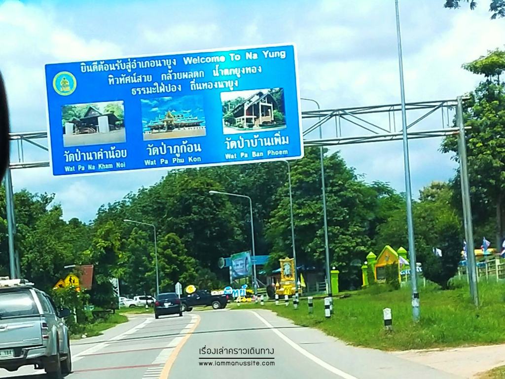 ผ่านทางแยกไปวัดป่าภูก้อน วัดดังแห่งนายูง ที่มีโบสถ์สีฟ้าสวยสดใส แต่ถ้าไปคีรีวงกตต้องตรงต่อไปอีก บอกเพื่อนอีก ขากลับฉันต้องได้แวะวัดป่าภูก้อนนะยะ