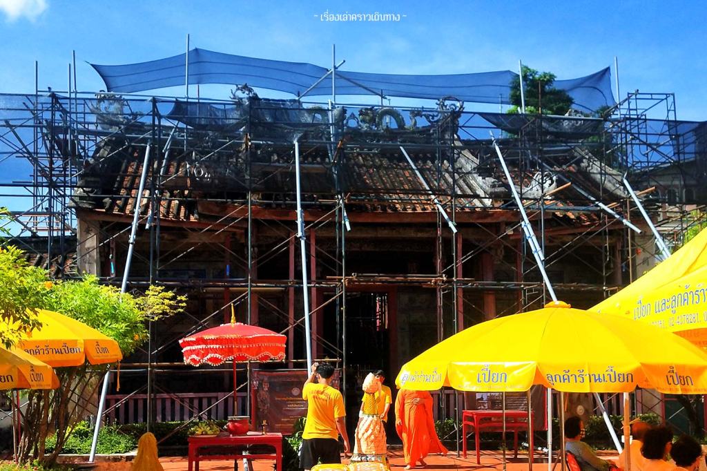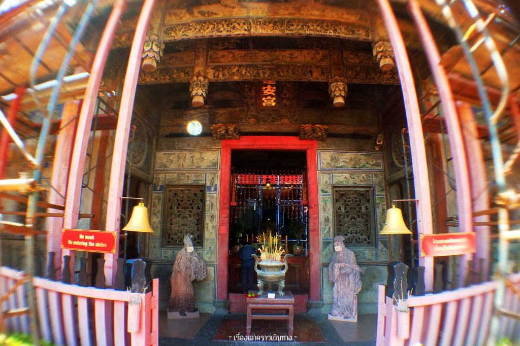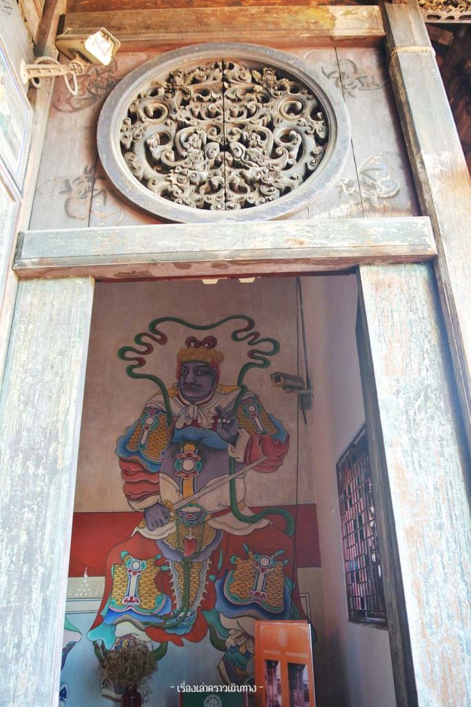 ตอนที่ไปโชคร้ายไปนิด เพราะศาลเจ้ากำลังอยู่ในช่วงบูรณะซ่อมแซมโดยกรมศิลปากร แต่แค่มองทางเข้าศาลเจ้าและหลังคาผ่านนั่งร้านและตาข่ายเข้าไปก็ประทับใจในความสวยงามแล้ว เดินเข้าไปด้านในแล้วขอบอกว่า มันสวยงามมาก มาก มาก มากจริงๆ ยิ่งได้รับการบูรณะซ่อมแซมภาพฝาผนังแล้วเลยทำให้สวยงามมากขึ้นไปอีก เสียดายว่าด้านในห้ามถ่ายรูป