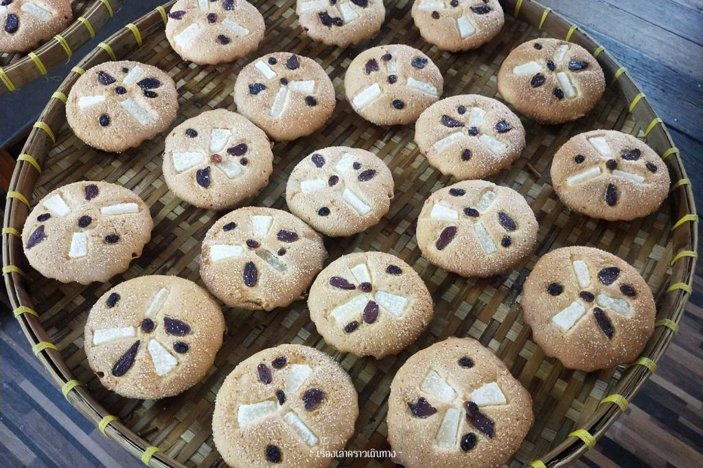 - ขนมหน้านวล ขนมไทยโบราณทำจากแป้งสาลี ไข่แดง และน้ำตาล อบให้สุก