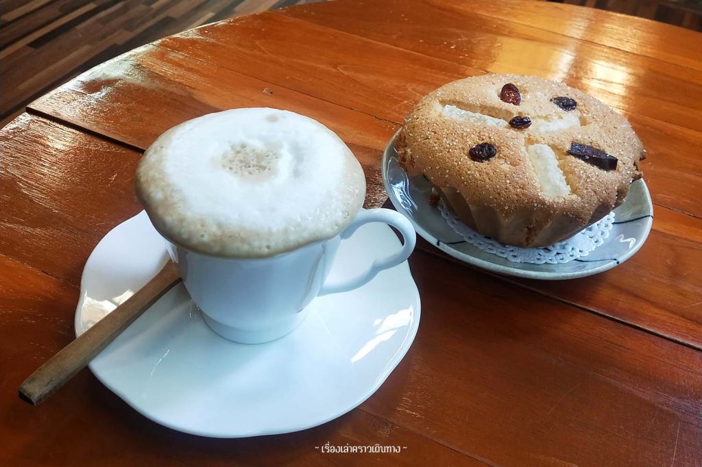 อิ่มอาหารแล้ว ถึงเวลาพักผ่อนจิบกาแฟ ซึ่งเลือกได้ว่าจะไปนั่งชิลจิบกาแฟที่พิพิธภัณฑ์กุฎีจีนก็ได้นะ บรรยากาศดีมาก นั่งสบาย แต่เราอุดหนุนเครื่องดื่มเย็นไปแล้ว ก็เลยเลือกไปกระจายเงินร้านอื่นบ้าง เลือกไปนั่งจิบกาแฟที่ร้านขนมฝรั่งธนูสิงห์ ร้านขนมฝรั่งชื่อดังของย่านนี้