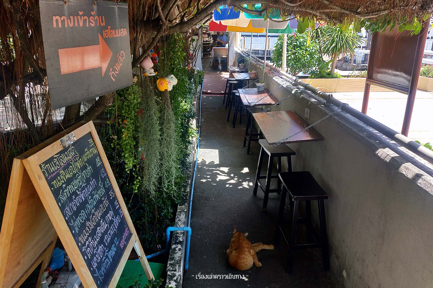 ฝากท้องกับร้านเฮโลนมสดแต่ไม่กินนมสด จัดขนมจีนแกงไก่คั่วดูหน่อย รอไม่นานก็ได้ชิม แกงไก่เหมือนแกงเผ็ดแต่ไม่ใส่ผักเลย อร่อยตามสมควร เพราะไม่ชอบกินผักในแกงเผ็ดอยู่แล้วเลยถูกใจมาก กินเกลี้ยงเลย ร้านอยู่ริมแม่น้ำติดกับทางเข้าวัดซางตาครู๊สเลย ป้ายจะเล็กๆหน่อย