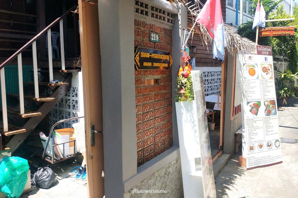 หลังจากได้ไปเดินเที่ยวชุมชนกุฎีจีนไม่กี่วัน ได้กลับไปปชิมอาหารไทย-โปรตุเกสที่บ้านสกุลทอง ร้านเปิด 11:00 – 17:30 โดยประมาณ ถ้าไปวันธรรมดาต้องโทรไปจองก่อนล่วงหน้า 2-3 วัน เพราะอาหารต้องเตรียมล่วงหน้า และวันธรรมดาจะเป็นอาหารชุดราคาคนละ 700 บาท มีของว่าง อาหารหลัก ของหวาน และเครื่องดื่ม ทุกคนได้ 1 ชุด 1 อิ่ม อาหารก็จะมีปรับเปลี่ยนไปตามเหมาะสมโดยเน้นอาหารไทย-โปรตุเกสสูตรโบราณ ซึ่งวันที่เราไป มีรายการอาหารตามนี้