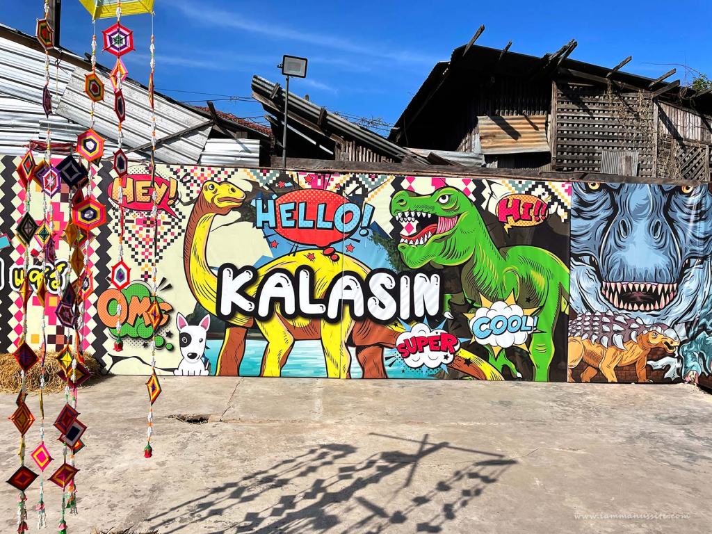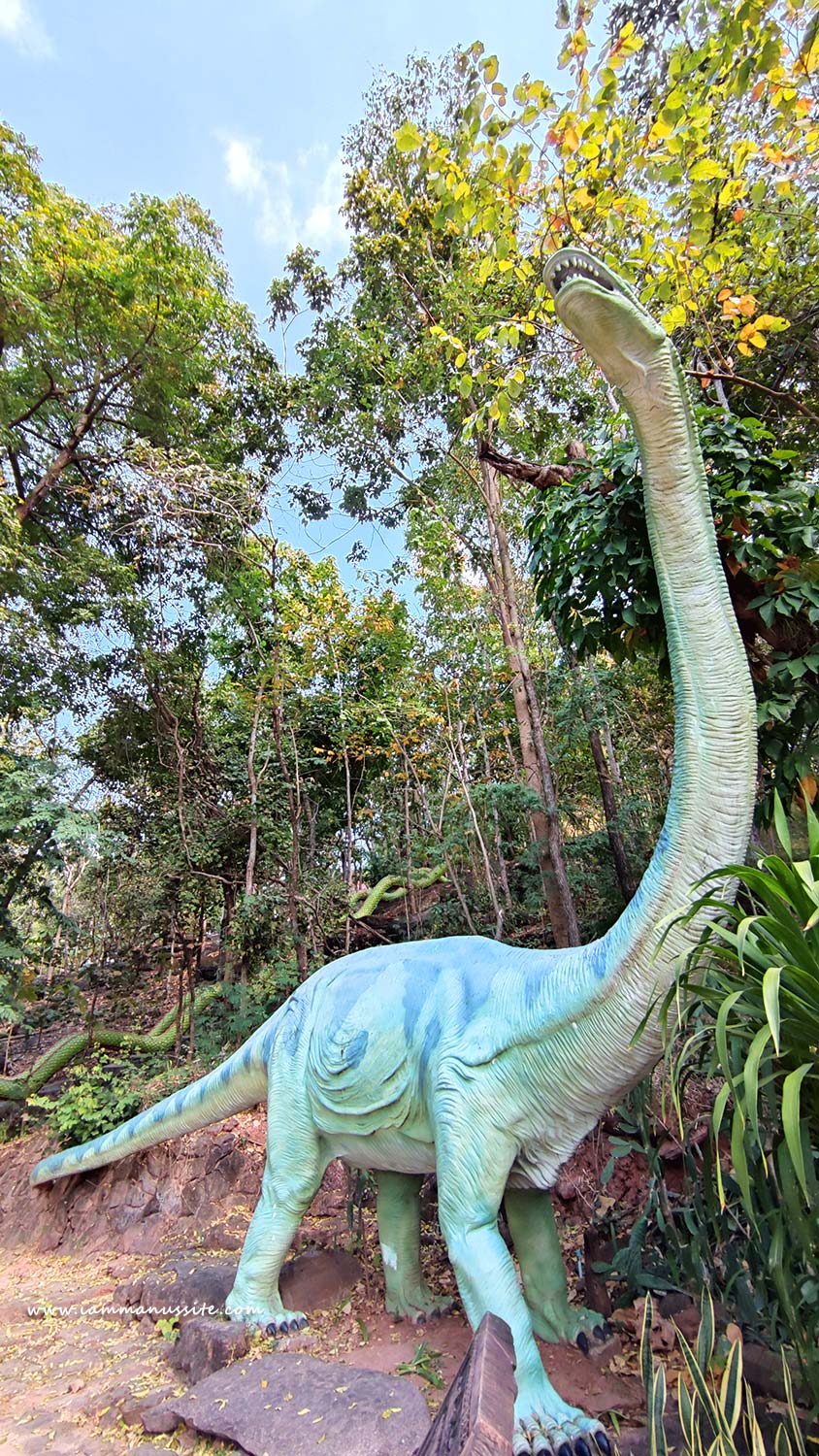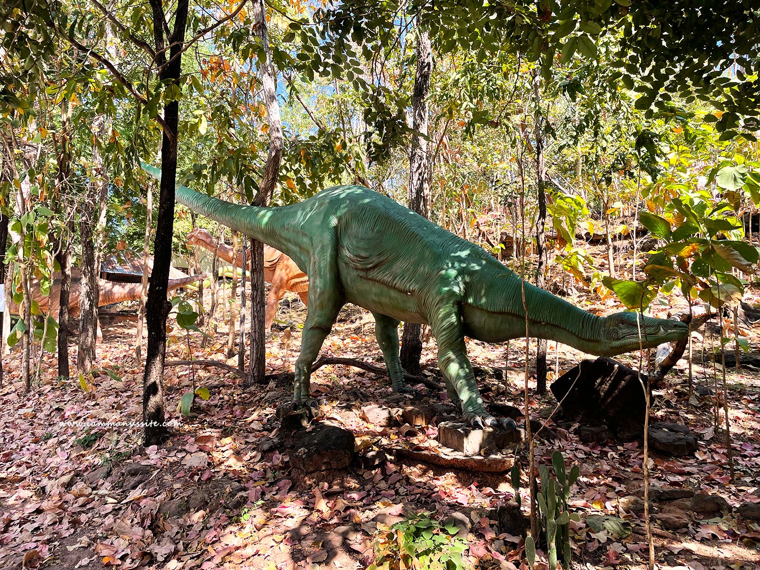 ขับรถจากอ.กมลาไสยมาราวๆ 70 กม. อาจนึกว่าขับรถข้ามมิติกลับโลกดึกดำบรรพ์ เพราะจะเห็นไดโนเสาร์เต็มไปหมด เหมือนเข้าจูราสสิคพาร์ค แสดงว่ามาถึงอ.สหัสขันธ์แล้ว