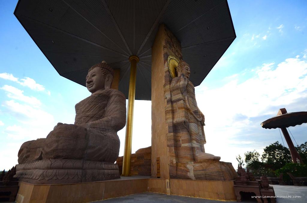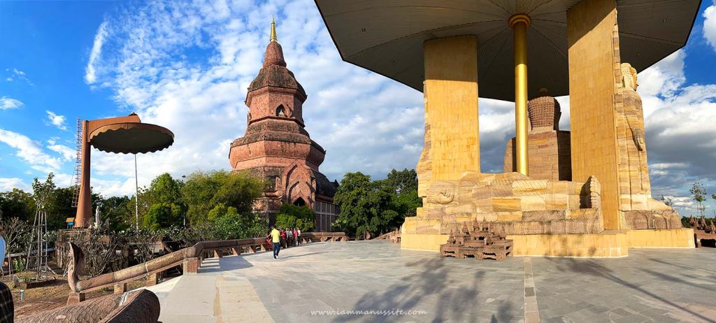 พระพรหมภูมิปาโล สร้างโดยช่างฝีมือสกุลช่างล้านช้างโบราณ ประทับนั่งอยู่กลางลาน มีระเบียงมองเห็นเขื่อนลำปาว ถ้ามองไปทางทิศตะวันออกจะเห็น เจดีย์สีน้ำตาลแดงขนาดใหญ่ อยู่ไม่ไกล เป็นจุดหมายที่ต่อไปของเรา