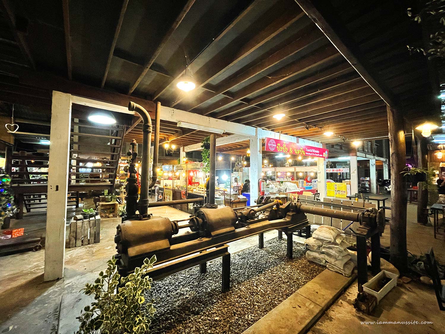 ช่วงเย็นเลือกไปที่ตลาดโรงสี โรงสีเก่าอายุกว่า 50 ปี ปรับปรุงให้เป็นที่ขายของ ขายอาหาร เลือกซื้อจากร้านต่างๆแล้วเอามานั่งกินเหมือนฟู๊ดคอร์ท ลานด้านนอกมีดนตรีเล่น อารมณ์คล้ายๆลานเบียร์ พวกเราเลือก แจ่วฮ้อน กับของกินอื่น เดินเลือกซื้อตามชอบ ของหวานต้องไม่พลาด อะไรที่เป็นไดโนเสาร์ เช่น โรตีไดโนเสาร์ ปาท่องโก๋ไดโนเสาร์ ขนมปังไดโนเสาร์