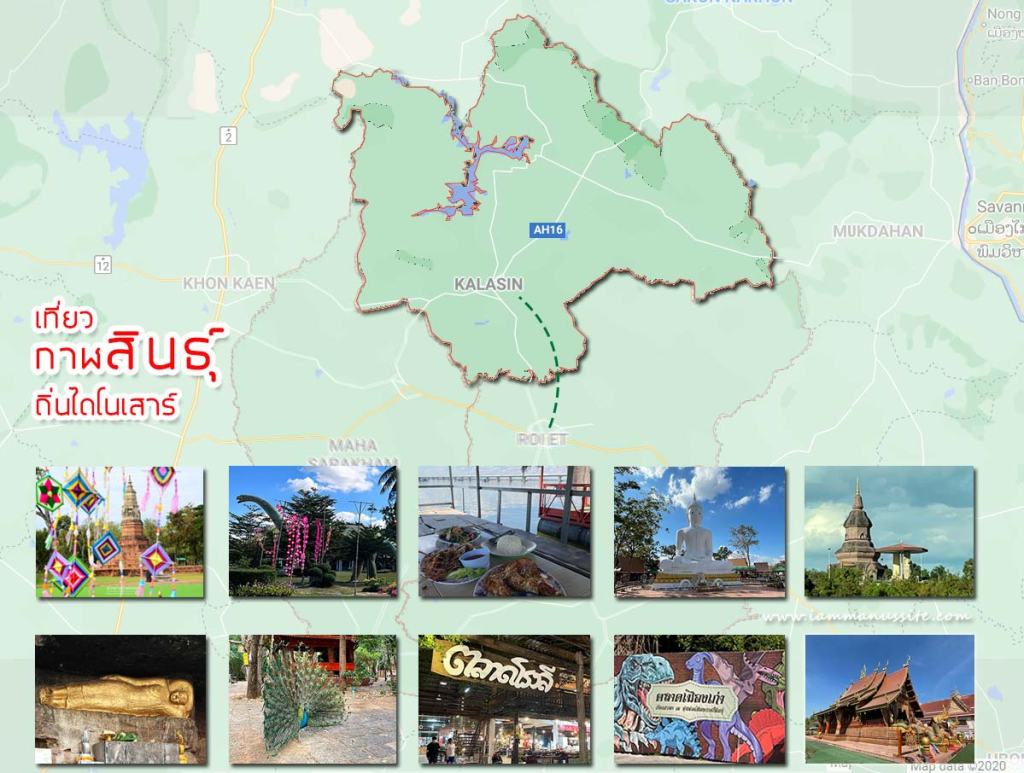กาฬสินธุ์อยู่ค่อนไปทางเหนือของร้อยเอ็ด ขับรถแค่ 30 กม.กว่าๆก็ข้ามเขตเข้ากาฬสินธุ์แล้ว แผนการเที่ยว คือ พระธาตุยาคู > ดูไดโนเสาร์ที่พิพิธภัณฑ์สิรินธร กับหลุมขุดค้นภูกุ้มข้าว > กินข้าวบนแพริมเขื่อนลำปาว แถมสะพานเทพสุดา > แวะพักจิบกาแฟ > ขึ้นภูสิงห์นมัสการพระหินขาว > ไปพุทธนิมิตภูค่าว > จบวันริมหาดดอกเกด (แต่เปลี่ยนใจไปเยี่ยมลูกน้องเก่าที่กลับบ้านมาทำฟาร์มเมล่อน เลยเปลี่ยนแผนไปเที่ยวฟาร์ม) แล้วบึ่งกลับเข้าตัวเมืองกาฬสินธุ์ > กินข้าวเย็นแถวตลาดโรงสี > นอนไพบูลย์เพลส > กินอาหารเช้าร้าน แตงอาหารเช้า > เดินเล่นชุมชนเมืองเก่าแถววัดกลาง > วัดสว่างหัวนาคำ แล้วข้ามไปมหาสารคาม