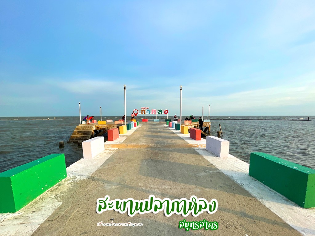 จากสะพานแดงแรงฤทธิ์ ขับรถต่อไปที่ สะพานสายรุ้ง แค่ชื่อสะพานก็เดาได้แล้วว่าน่าจะหลากสี ปักหมุด GPS ไปที่ศาลเจ้าพ่อกิมท้ง ชายทะเลกาหลง ห่างจากจุดชมโลมาสะพานแดงมาอีกราวๆ 40 กม.