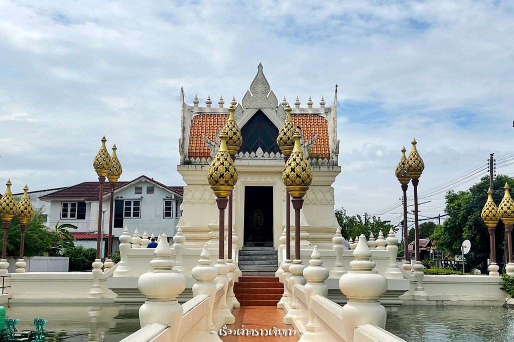 ไม่ห่างจากวัดโบสถ์ ไปต่อที่วัดน้ำ วัดเก่าแก่สร้างมาตั้งแต่ ร.๕ กำแพงศิลาแลงยาวขนานถนนเลียบคลองพร้อมซุ้มประตูขนาดใหญ่เห็นชัดเจน เข้ามาในเขตวัดแล้วจุดแรกจะเห็นเรือนไทยที่สมเด็จพระเทพฯเคยใช้ประทับตอนเสด็จมาทรงประกอบพิธียกฉัตรพระประธานปี ๒๕๔๘ เป็นเรือนทรงไทยโบราณแบบคนมีฐานะหน่อยแต่ก็ไม่ได้หรูหราอะไรมาก สมเป็นสมเด็จพระเทพฯจริงๆ เดินเข้าด้านในวัดจะเป็นป่าร่มรื่น มีลานปฏิบัติธรรม มีบ่อน้ำขนาดพอสมควร บรรยากาศสงบร่มรื่น สมัยเริ่มสร้างเป็นพื้นที่ชุ่มน้ำทั้งหมดเลยมีการสร้างทางเดินไม้เชื่อมต่อสถานที่ทั่ววัด ตอนนี้น้ำแห้งไปเกือบหมดมีแต่ใบไม้แห้ง