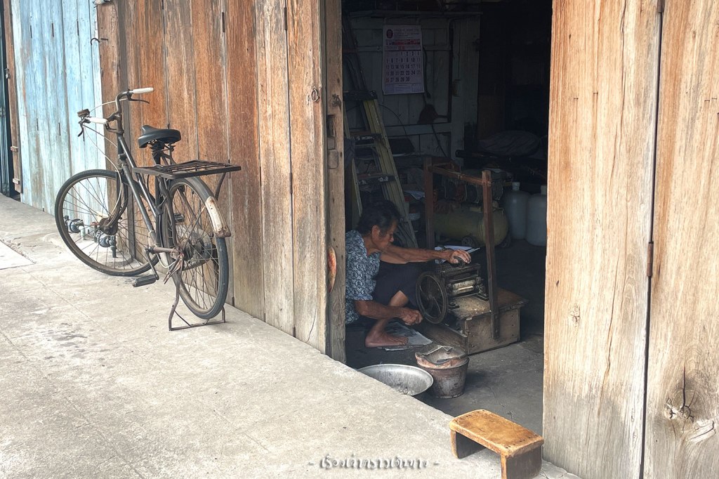 นี่ไง เจอยายนั่งบดปลาหมึกเหมือนรูปบนกำแพงเลย