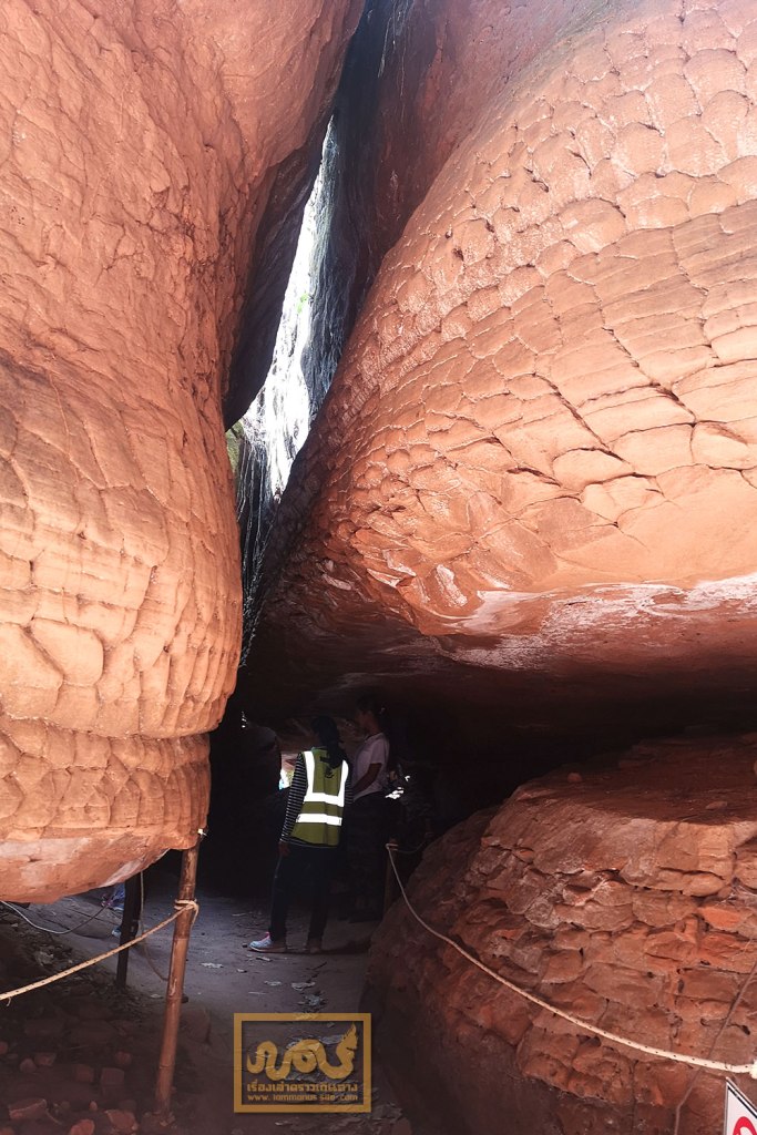 ระหว่างทางเดินมีพิ้นผิวลวดลายของหินคล้ายเกล็ดงูเต็มไปหมด