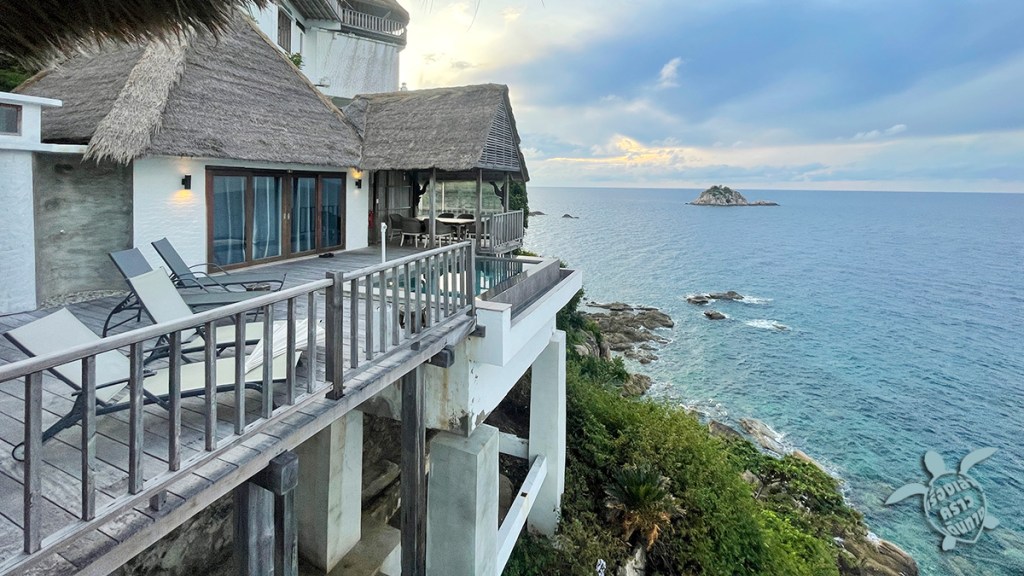 Cape Shark Villa ที่พักแบบวิลล่าราคาแรง แต่คุ้มค่าเงินจริงๆ ห้องพักอยู่แยกๆห่างๆกันไปตามหน้าผา เป็นส่วนตัวมาก แต่ละยูนิตมีสระน้ำริมผา มี่ทั้งแบบห้องเดียว หรืออยู่แบบกลุ่มแบบครอบครัว มี 3-4 ห้องนอน มีพื้นที่ส่วนกลางร่วมกันก็มี ที่พักดีควรใช้เวลาพักผ่อนให้คุ้มค่า พวกเรามาถึงที่พักช่วงบ่ายแก่ๆก็ไม่ไปไหนเลย พักผ่อนลงสระน้ำ เดินลงไปดำน้ำก็ได้ สั่งอาหารเข้ามาปาร์ตี้ยามเย็นเลย บรรยากาศดีสุดๆ เกินบรรยาย เช้าก็มีอาหารเช้ามาส่งให้ที่พักเลย ชอบมาก แต่พักหลายคืนไม่ไหว งบหมด 555