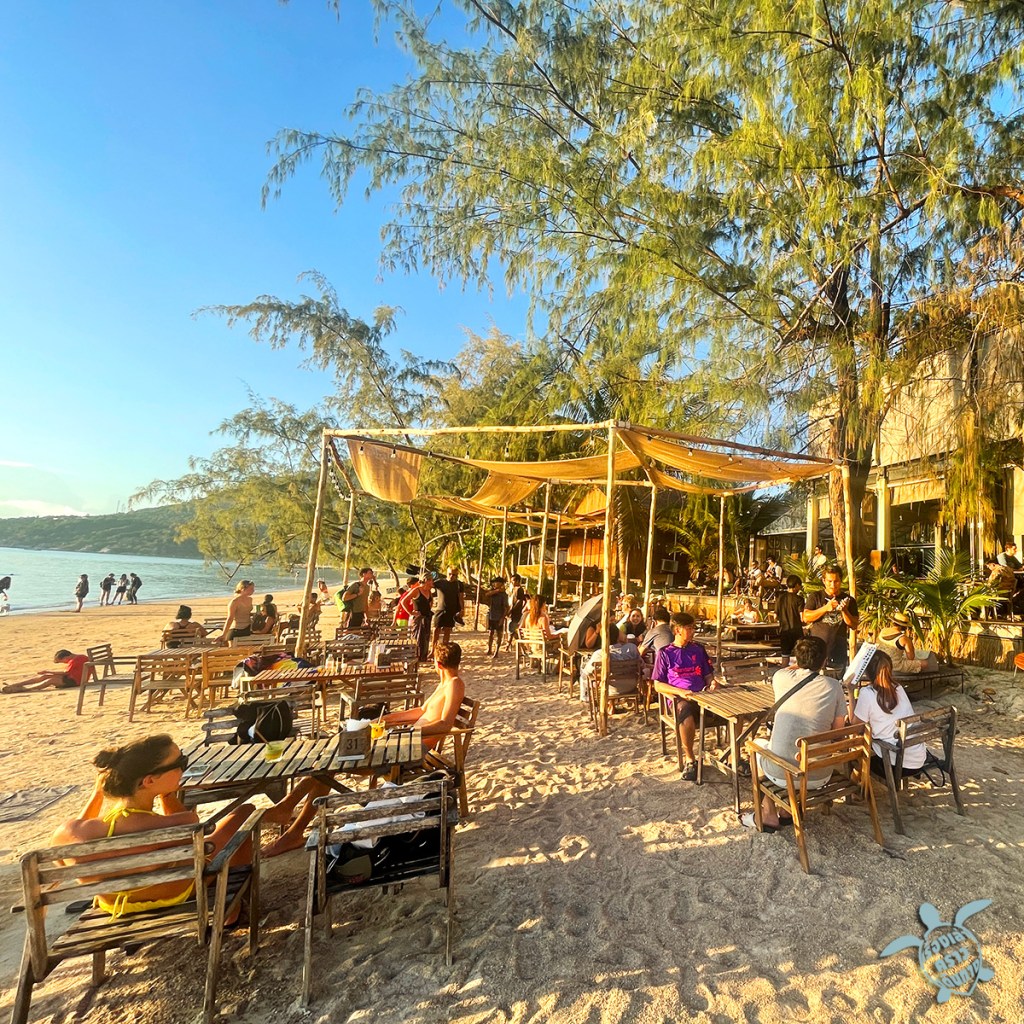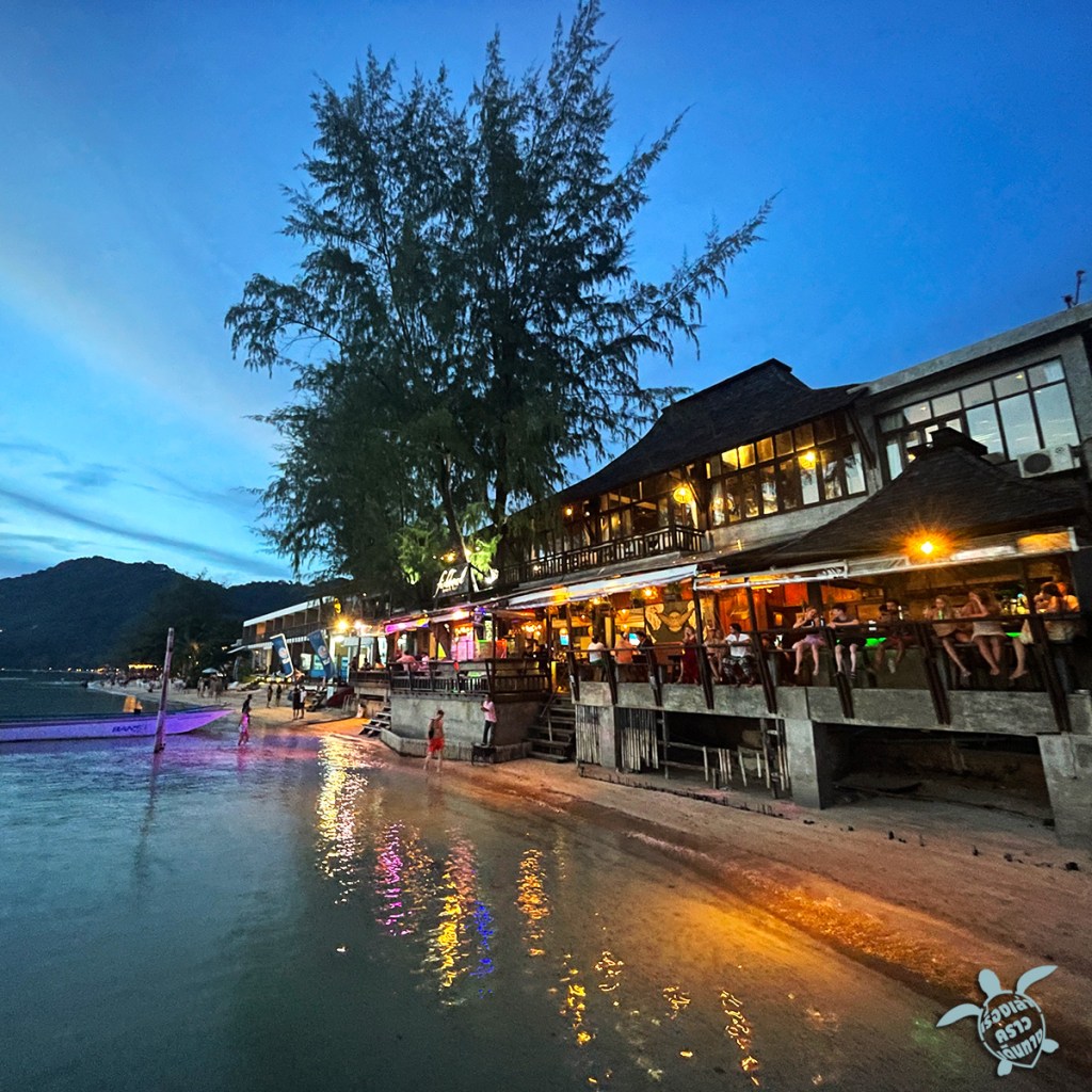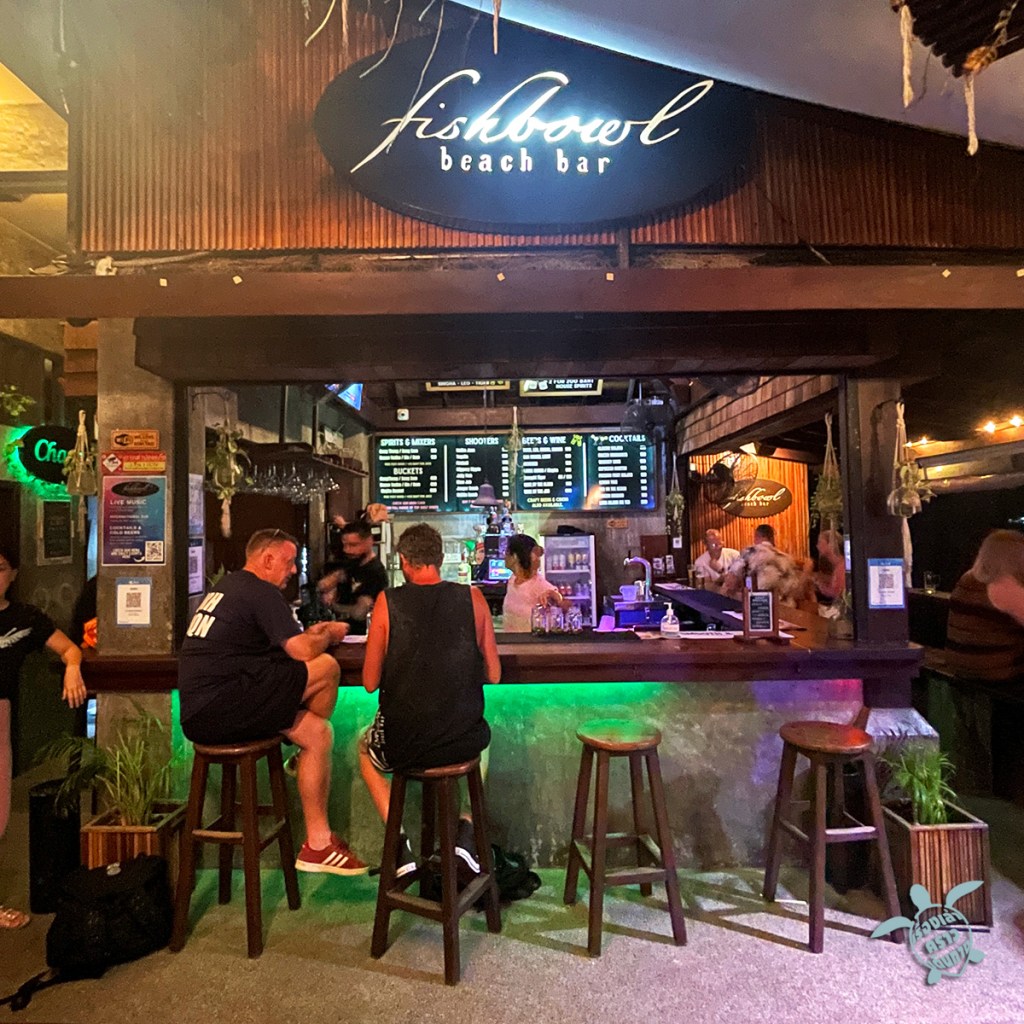Fish bowl beach bar ร้านนั่งดื่มริมหาดทรายรี มีดนตรีเล่น Happy Hour 6 โมงยัน 4 ทุ่ม บาร์อยู่ติดกับร้านอาหาร Ban เลย ติดแบบสั่งอาหารมากินกันได้ นั่งเพลินๆอาจจะนึกว่าอยู่ไมอามี่ เพราะมีแต่ฝรั่ง สั่งเครื่องดื่มก็ต้องพูดอังกฤษเพราะเด็กเป็นพม่า พูดไทยไม่เข้าใจ ฮา…. ดนตรีดีคนก็เยอะยิ่งดึกยิ่งสนุก