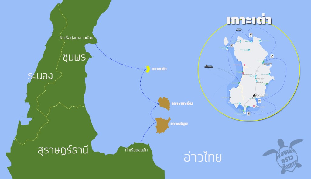 เกาะเต่า เกาะขนาดกลางๆในทะเลอ่าวไทย ที่หลายคนคิดว่าอยู่ในเขตพื้นที่จังหวัดชุมพร (เราด้วยนี่แหละ) แต่ความจริงแล้ว เกาะเต่าอยู่ในเขตพื้นที่ของจังหวัดสุราษฎร์ธานี รวมกับ เกาะพะงัน เกาะสมุย แต่ด้วยว่า ถ้านั่งเรือจากท่าเรือชุมพรไปเกาะเต่าใกล้กว่า คนก็เลยนิยมมาลงเรือที่ชุมพรไงล่ะ