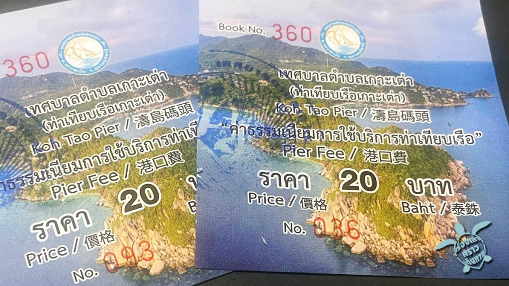 คนลงที่เกาะเต่ากันค่อนข้างเยอะ ตรงนี้เป็นมหาวิบากกรรม เพราะรอออกจากเรือนานมาก ตอนพวกเราไปมีเรือเข้าพร้อมกัน 2 ลำ (อีกลำน่าจะมาจากเกาะพะงัน) ต้องรอคิว แถมพอออกมาคนติดเต็มสะพาน เสียเวลาเกือบครึ่งชม. แล้วต้องเดินเบียดๆตามกันไปทีละกระดี๊บ มารู้ตอนที่เดินจนสุดสะพานว่าติดกันมากเพราะโดนกั้นเพื่อเก็บค่าธรรมเนียมคนละ 20 บาท วุ่นวายมาก นักท่องเที่ยวหลายคนหมดความอดทน เพราะเสียเวลากันครึ่งค่อนชั่วโมงแล้ว ก็มีปีนแนวกั้นกันออกไป บางคนไปถึงโต๊ะจนท.ก็ปฎิเสธไม่จ่ายเงินก็มี วุ่นวายมากมาย ควรปรับปรุงด่วนๆ