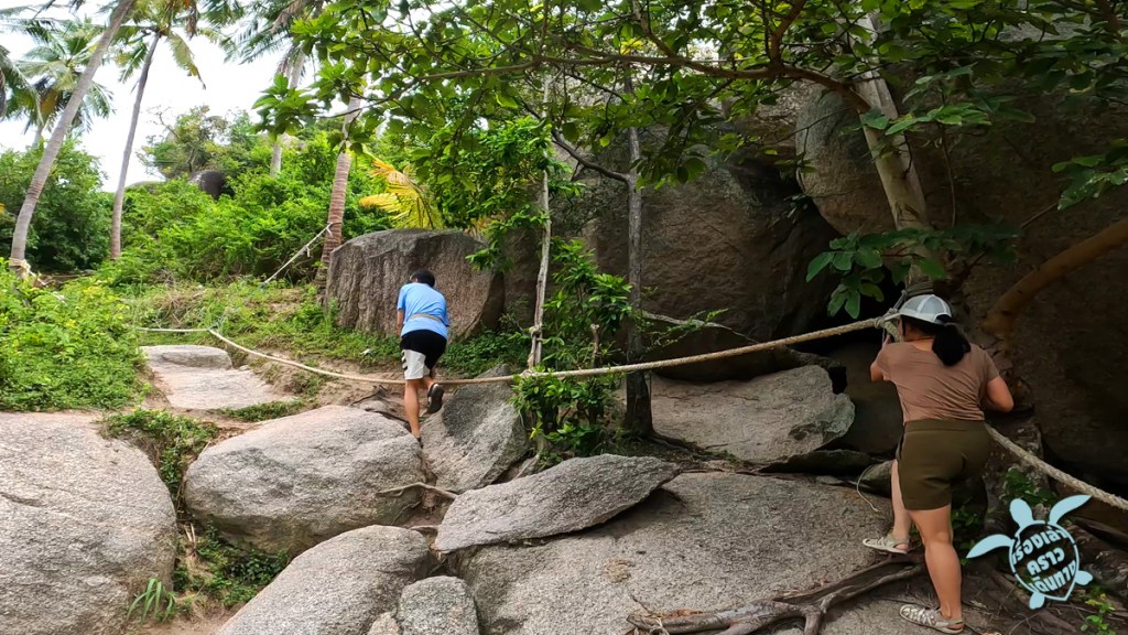 ทางเดินขึ้นจุดชมวิวก็ไม่ได้ชันอะไรมากมายนัก ต้องปีนป่ายนิดๆหน่อยๆ ใส่รองเท้าผ้าใบหรือแบบรัดส้นก็ดีกว่ารองเท้าแตะ แต่เอาจริง ฝรั่งมันใส่แตะคีบขึ้นกันฉลุย ขึ้นถึงบนยอดเขา ที่ไม่ได้กว้างมากนัก ถ้ามีนักท่องเที่ยวเยอะก็รอคิวกันขึ้นหน่อย ถ่ายรูปกันแต่พอประมาณ จะได้ไม่รอกันนาน