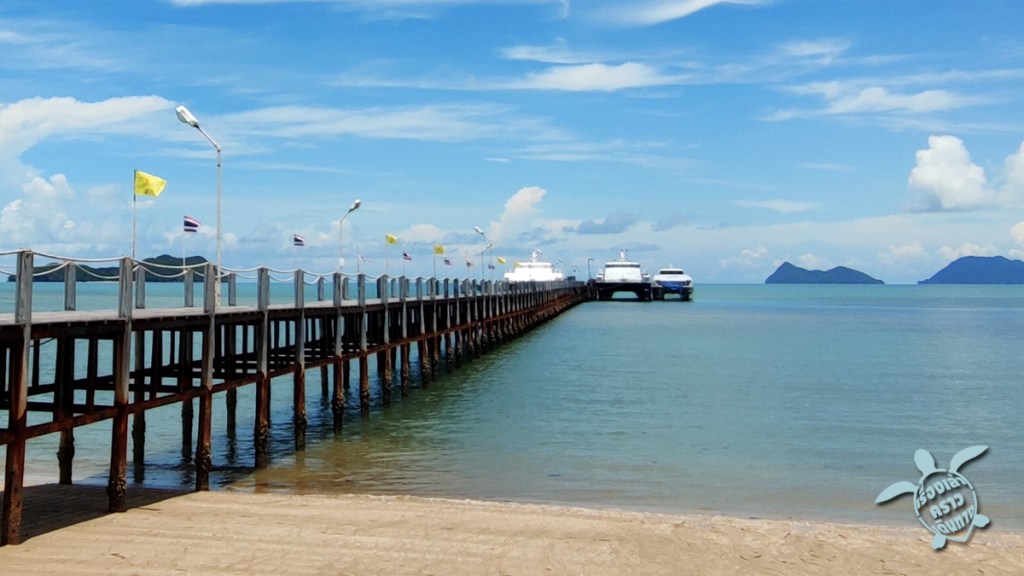 พวกเราเลือกการขับรถไปจากกรุงเทพฯแต่เช้ามืด ไปจอดรถที่ท่าเรือ จองเรือเที่ยว 13:15 (มีที่รับฝากรถหลายที่ใกล้ท่าเรือคิดราคาเป็นวัน) ไปถึงท่าเรือก็ไปติดต่อรับตั๋วจริงและสติ๊กเกอร์มาติดเสื้อ เพื่อให้เจ้าหน้าที่ได้รู้ว่าเราจะนั่งเรือไปไหน เพราะในเรือเดียวกันจะวิ่งจาก ท่าชุมพร ไปเกาะเต่า เกาะพงัน เกาะสมุย แล้วสุดทางที่ท่าเรือสุราษฎร์ธานี ถ้าซื้อแบบแพคเกจรวมนั่งรถต่อไปสนามบินหรือสถานีรถไฟ ก็มีสติ๊กเกอร์สีแยกไปอีก ถือว่าระบบจัดการดีทีเดียว