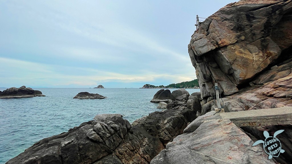 จากหน้าหาดเดินไปทางขวา จะเป็นทางเดินเลาะเขาเลียบทะเลไปเรื่อย วนไป หาดตาโต๊ะ อ่าวโฉลกบ้านเก่า แล้วถึงตรงที่เราจอดรถได้เลย วนได้เป็นวงกลมไม่ต้องเดินอ้อมไปอ้อมมา