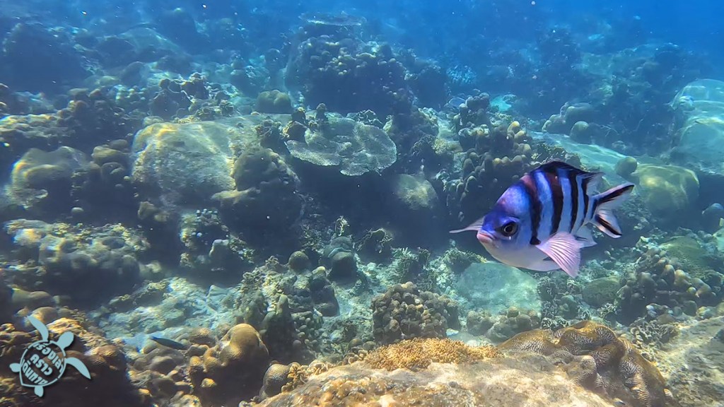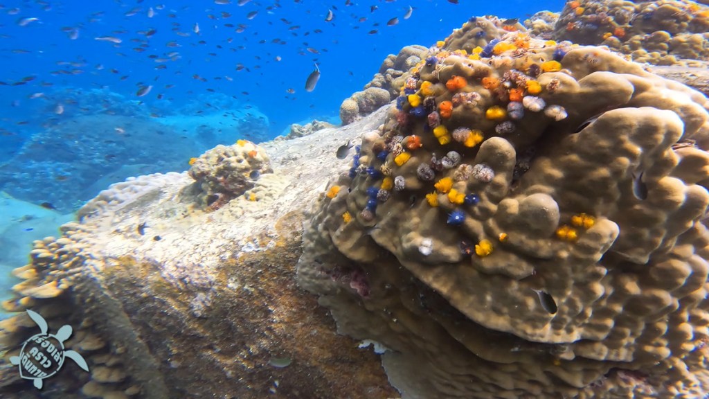จุดต่อไปคือ อ่าวม่วง หรืออ่าวมะม่วง ตรงนี้ปะการังเขากวางเยอะ ปลาก็มีพอสมควร