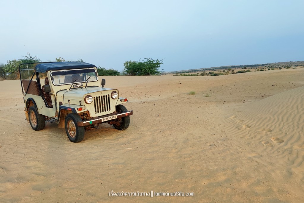 Sand Dune on road no. 11 จุดชมทะเลทรายอีกจุดที่เราได้ไปนั่งจี๊บลุยทะเลทราย แถบนี้จะไม่คึกคักคนเยอะเหมือนแถบ Sam sand dune แต่เนินทรายแถบนี้สวยกว่ามาก ไม่มีสิ่งก่อสร้างให้เห็น พนักงานโรงแรมที่แนะนำบอกว่านักท่องเที่ยวต่างชาติชอบมาแถบนี้มากกว่า เพราะสวย สงบ คนไม่มาก นอกจากมาขี่อูฐหรือนั่งจี๊บแล้ว บางคนก็มานอน Desert camp บางคนก็มานอนกลางทะเลทราย แบบปูผ้านอนบนทราย ไม่มีเต้นท์ใดๆ ไม่มีน้ำ ไม่มีไฟ แต่น่าจะสวยงามยามตื่นมาเห็นแสงทองตอนเช้า