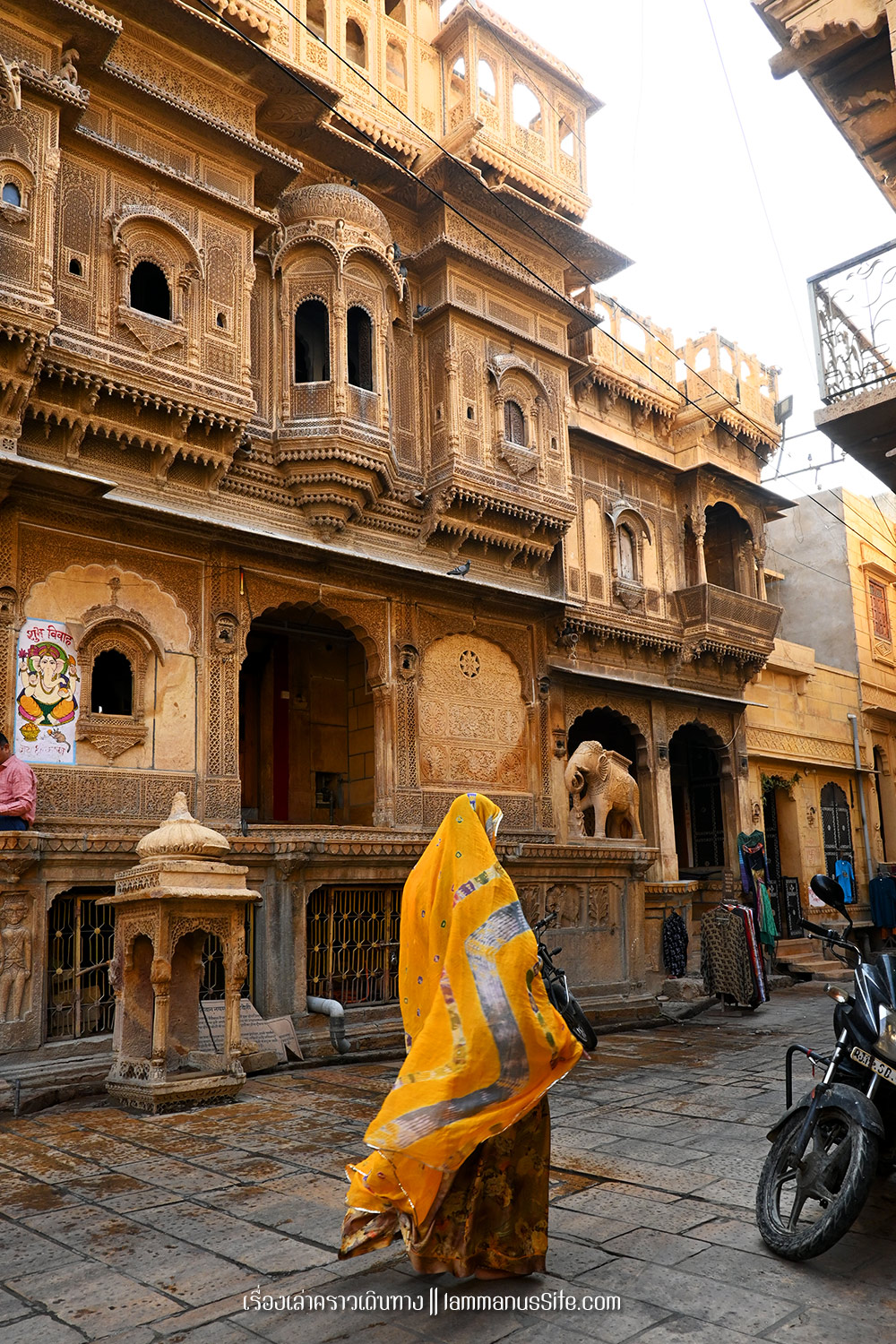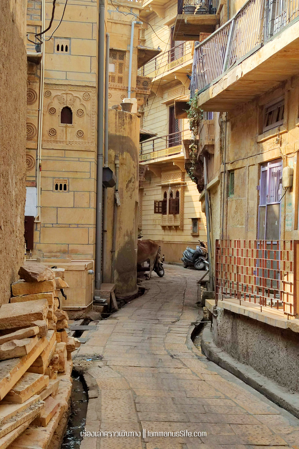 เดินตามตรอกซอยซอยในเมืองจัยซัลแมร์ สวยงามตามชื่อเมืองสีทอง เพราะทุกบ้านสร้างด้วยหินทรายสีเหลืองทองหมด ถ่ายรูปเล่นได้ไม่เบื่อเลย